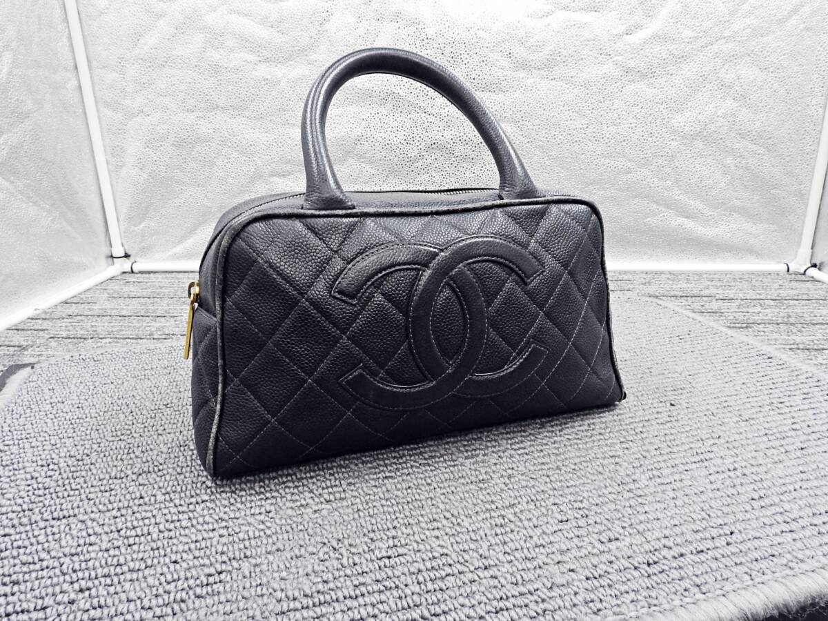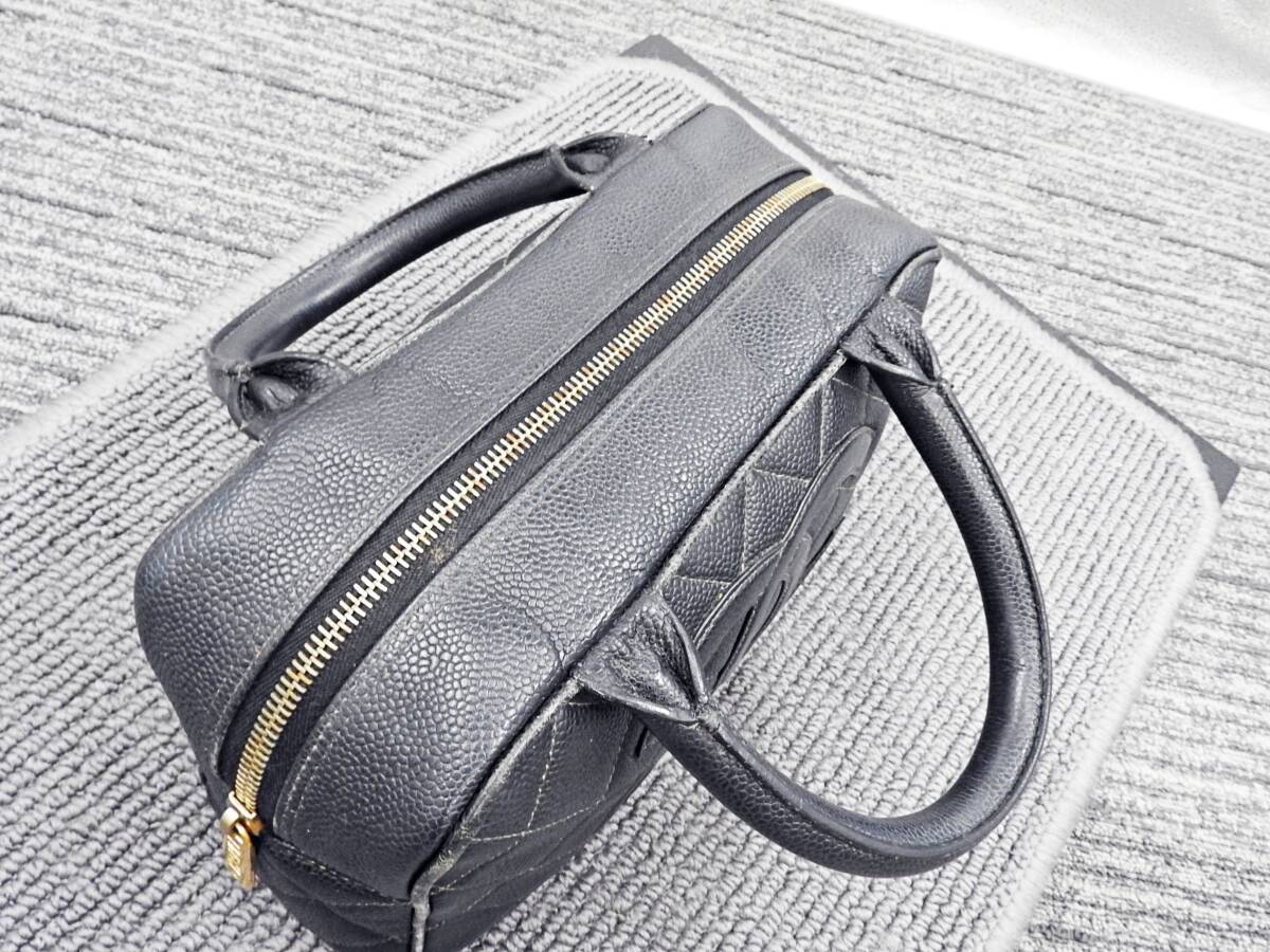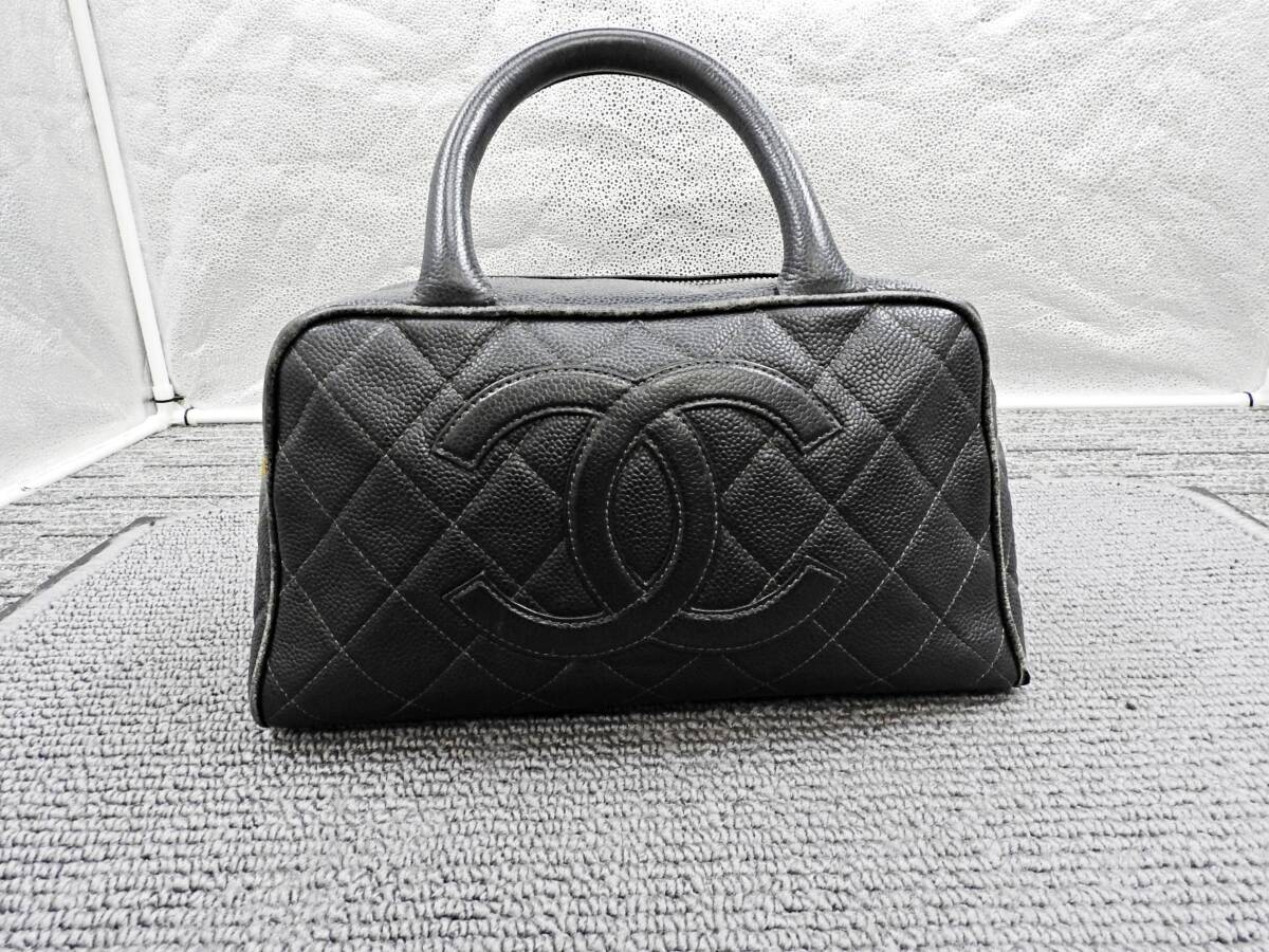 CHANEL シャネル■キャビアスキン マトラッセ ハンドバッグ ミニボストンバッグ ブラック ココマーク■USED品「管理№KT1381」