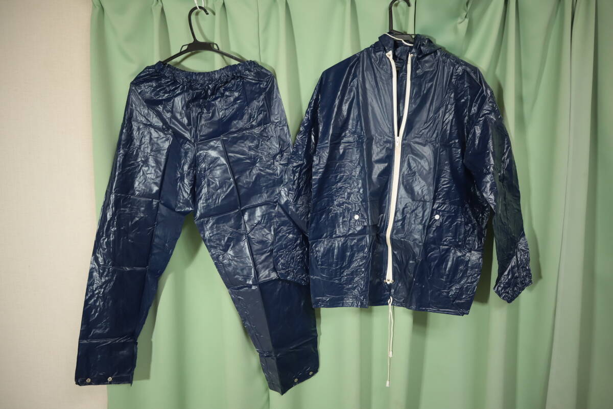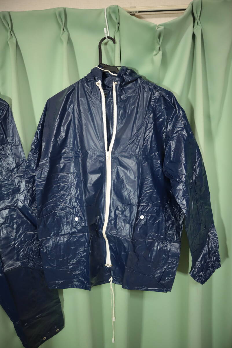 | ☆レトロ 光沢ビニールレインコート合羽上下 ネイビー M☆ |
