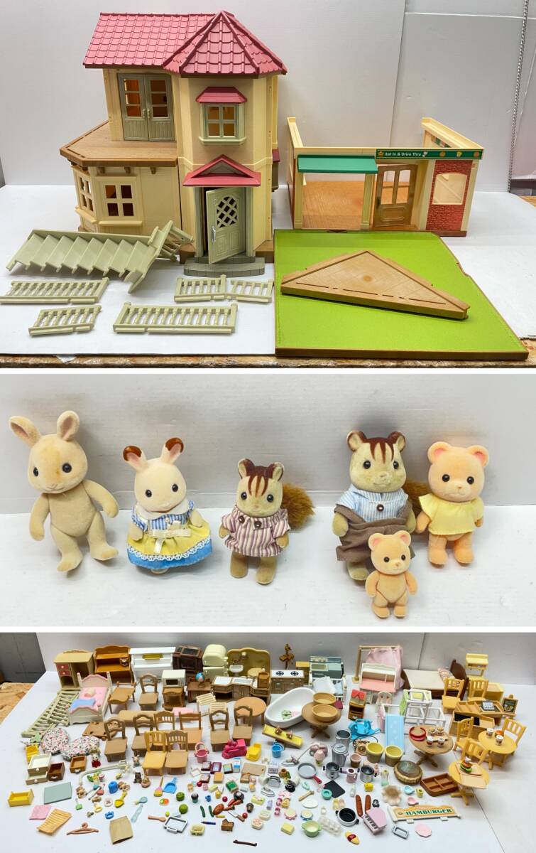 01w2409 ② ★1円~ シルバニアファミリー 大量 まとめ売り お家 森のハンバーガー屋さん 人形 家具 パーツ類未確認 ジャンク品