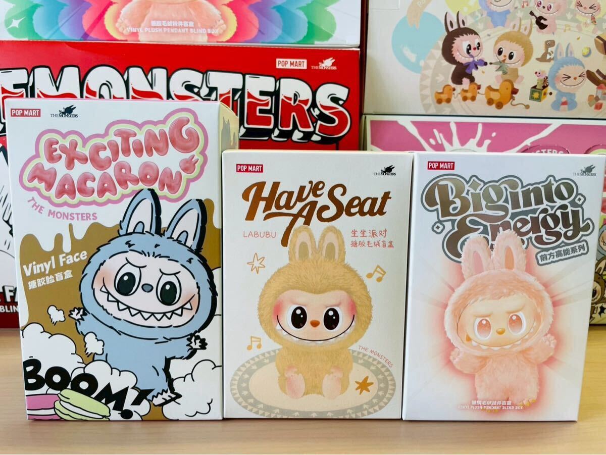 【正規品・新品未開封】POP MARTのTHE MONSTERSシリーズより、EXCITING MACARON、Have a Seat LABUBU、Biginto Energyの3個セットです。