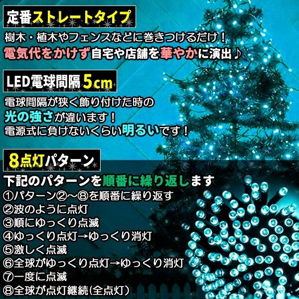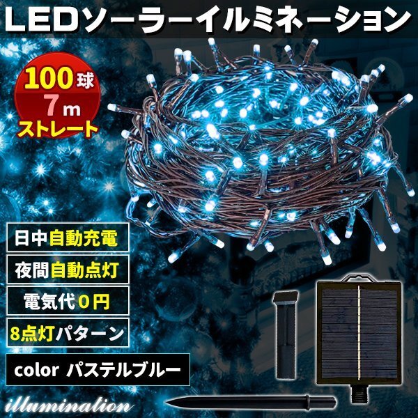 ソーラー イルミネーション 屋外 クリスマス ストレート 屋外用 イルミネーションライト 100球 パステルブルー