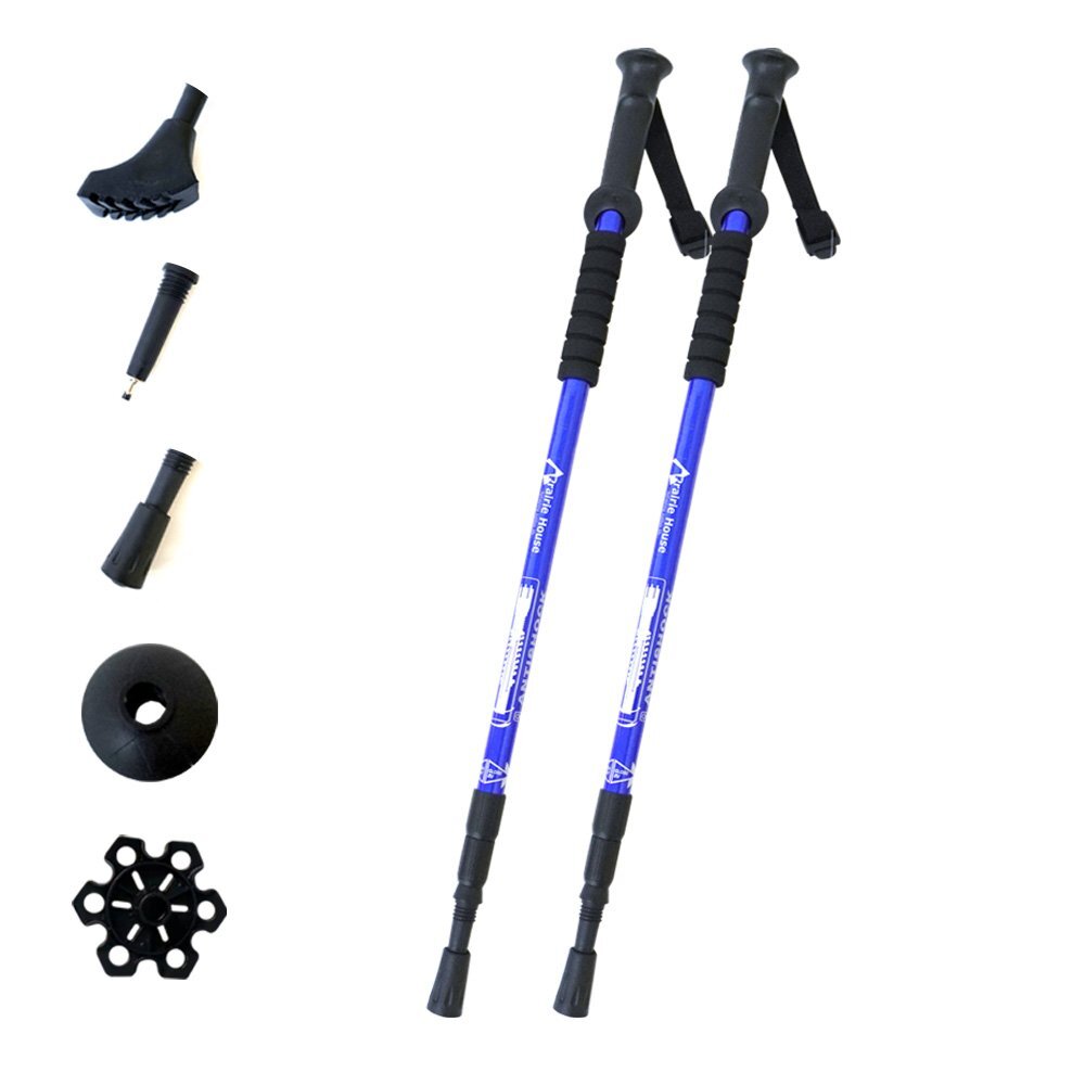 Prairie House トレッキングポール アンチショック 2本セット アルミ合金 軽量 伸縮式 収納袋 登山 ハイキング アウトドア ブルー XO847L