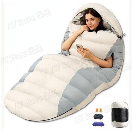 ■キャンプアウトドアウォームダウン寝袋、ユニークなデザイン、腕と足を伸ばすことができます。