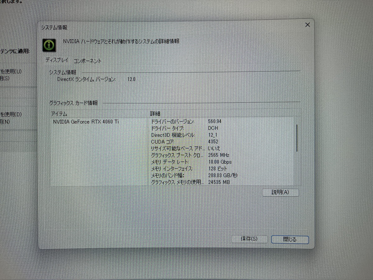 ・パソコンから取り外す直前のシステム情報は画像9枚目です。
