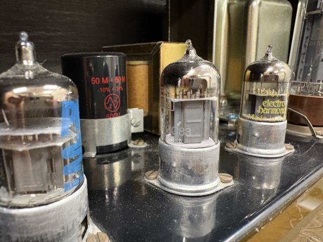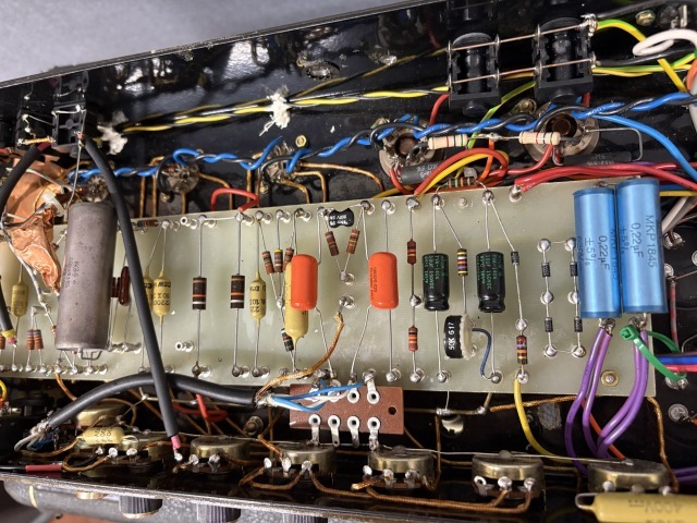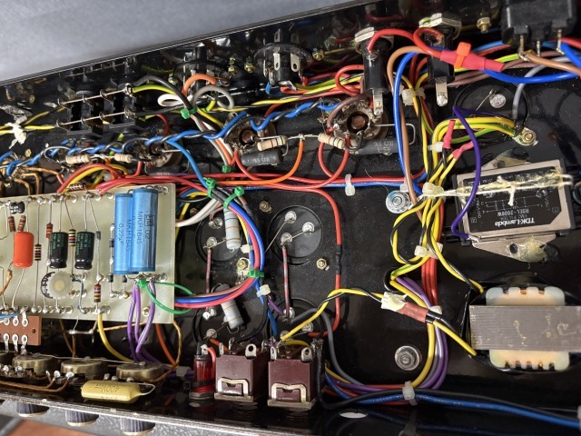 レイダウントランスの見た目ではないですがポイントトゥポイント配線、マスタードコンデンサーなどオールドマーシャルを目指して作られた個体になります。