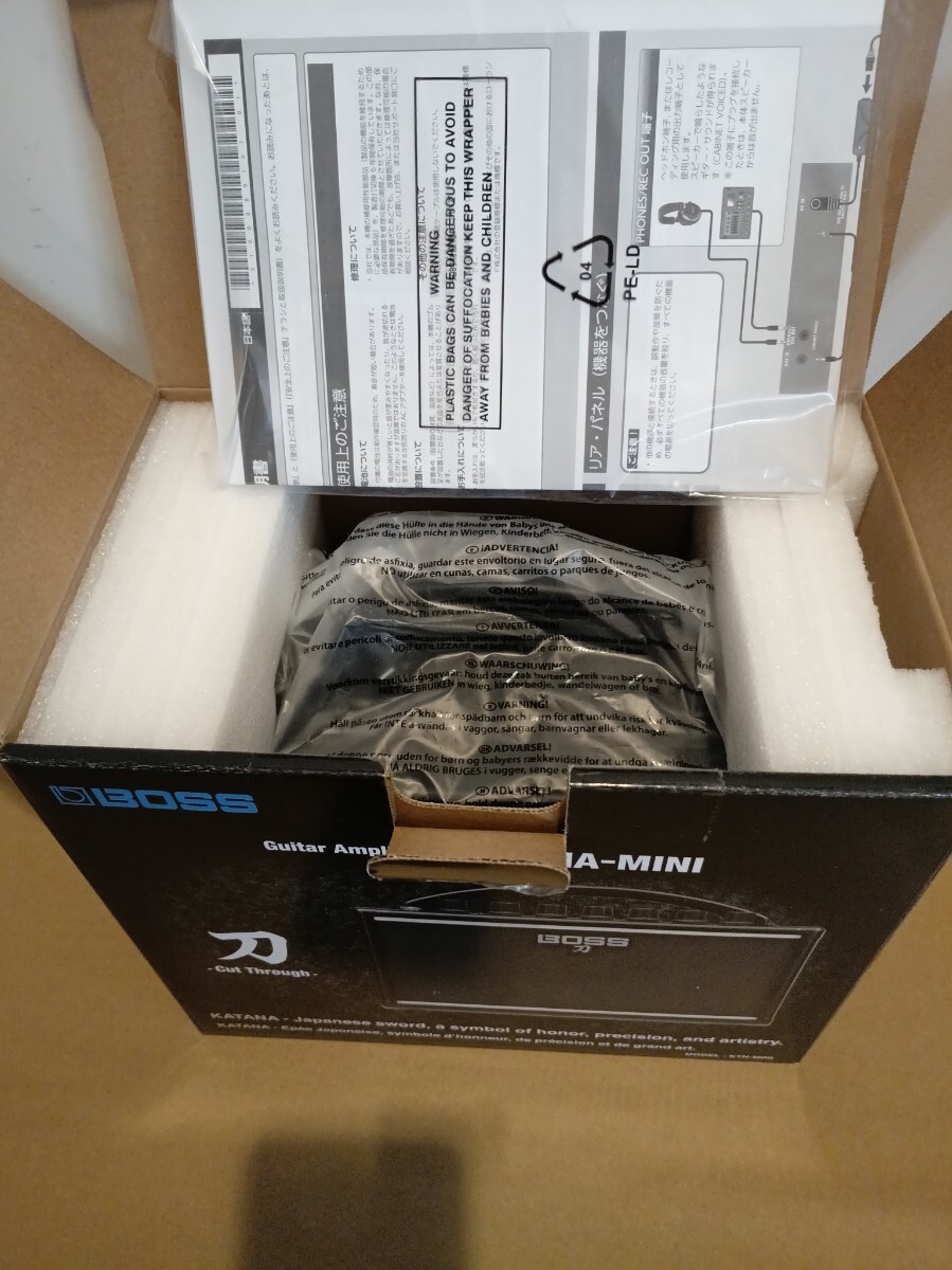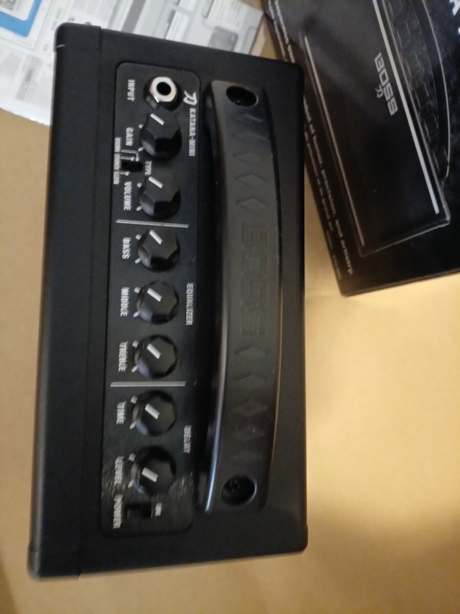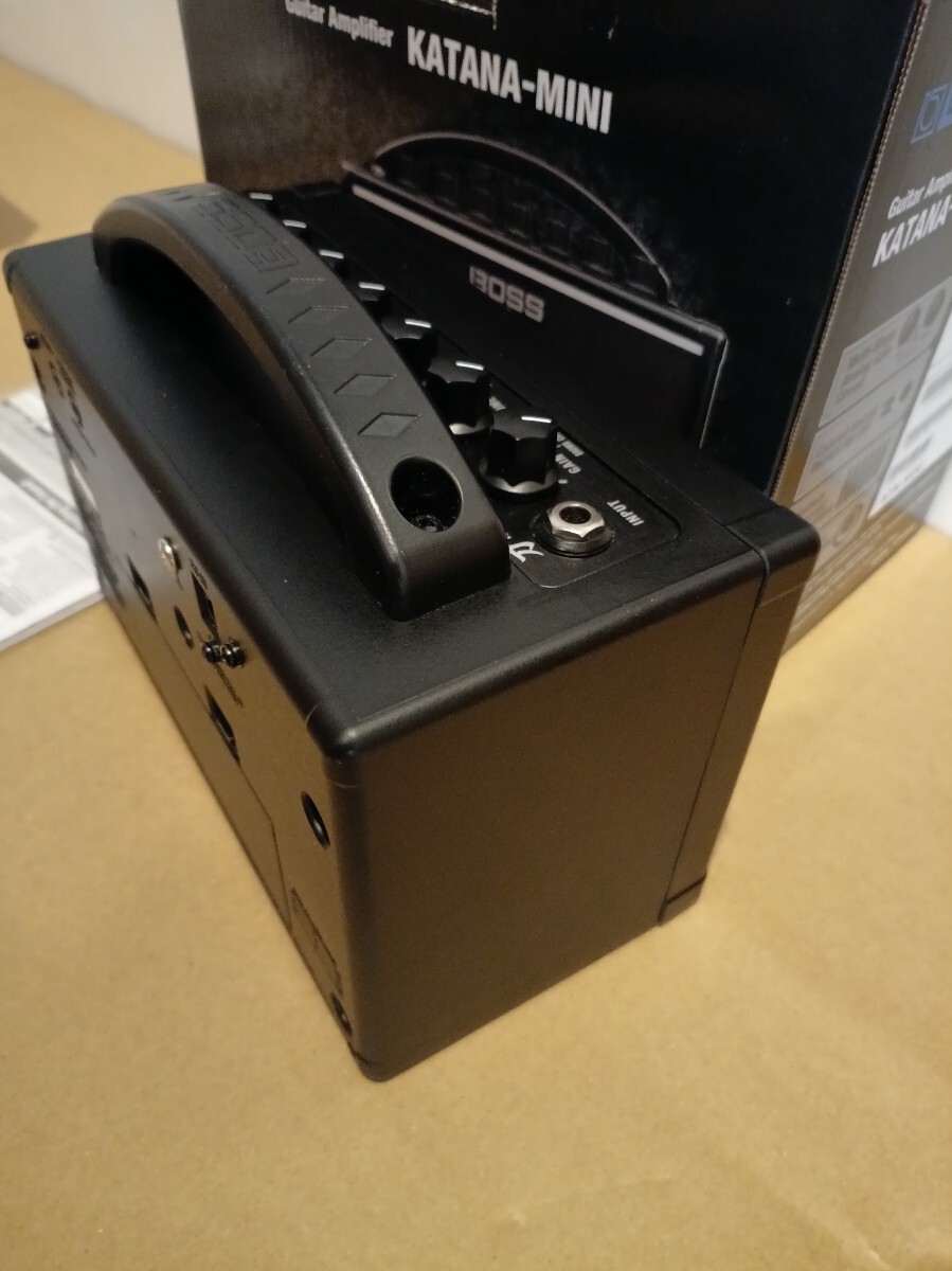 BOSS KATANA - MINI  ギターアンプ です。大手楽器店より新品購入した物ですが、試し弾き程度で、殆ど使用せずに保管していたので、本体の状態はとても良好、美品かと思います。新品購入を検討されている方にも、オススメかと思います。動作確認済み出品物は画像の物が全てです(*電池は付属しません。各自ご用意ください)。仕様等に関しては、メーカーサイトにて各自ご確認ください。画像をよくご確認頂き、納得された方のみご入札ください。Used扱い品になりますので、完璧な新品状態を求める方、コンディションを神経質に気にされる方は、絶対に入札しないで下さい。トラブル履歴、評価の悪い方は、こちらの判断で入札を制限する場合がございます。仕様、音質等の思い違いでの返品、返金は致しません。ノークレーム、ノーリターンをお約束願います。
