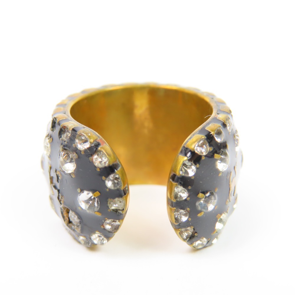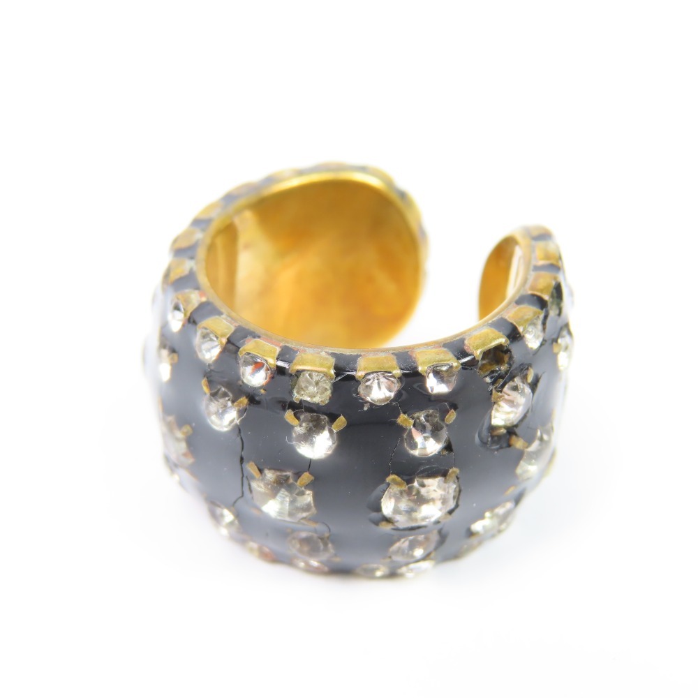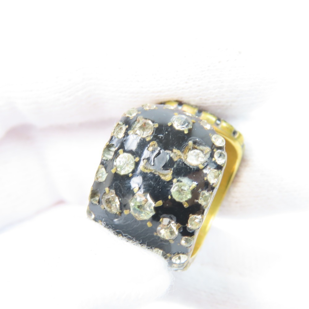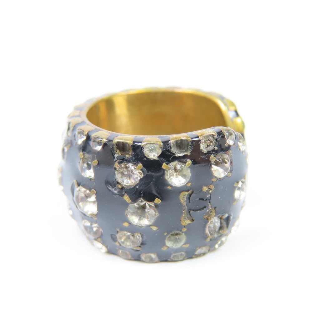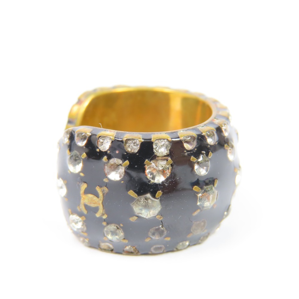 203514★1円スタート★CHANEL シャネル 美品 ココマーク 11号 アクセサリー ヴィンテージ リング 指輪 GP ラインストーン ブラック