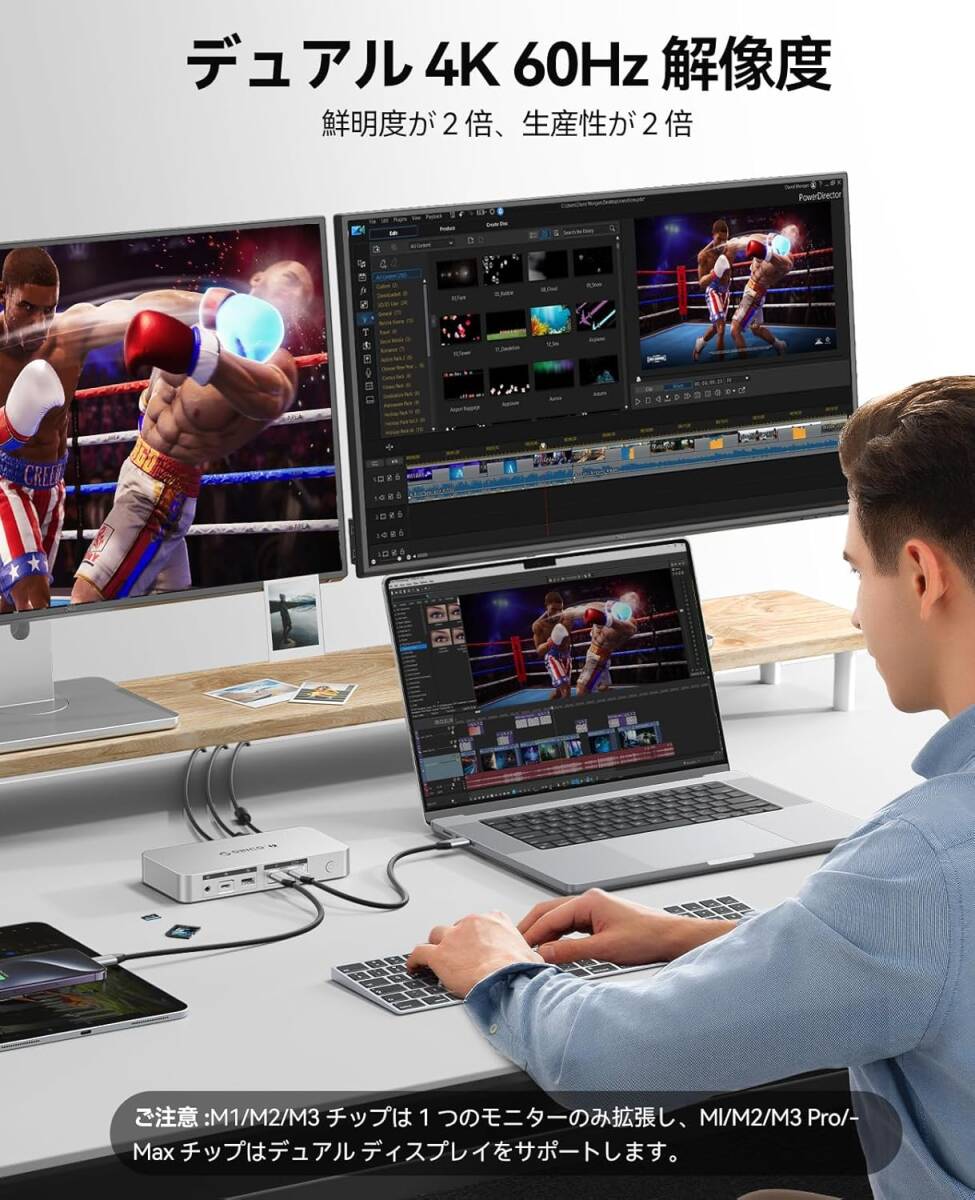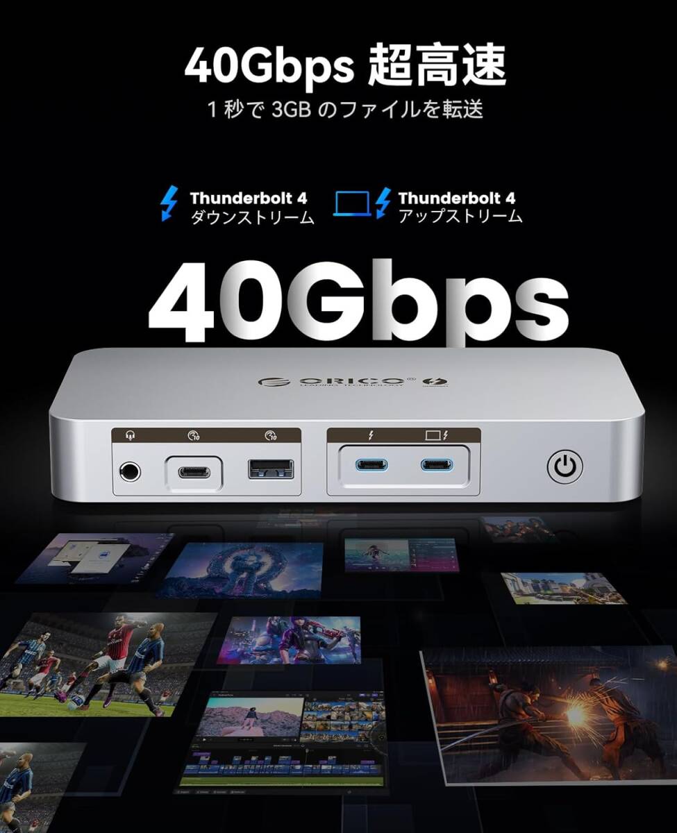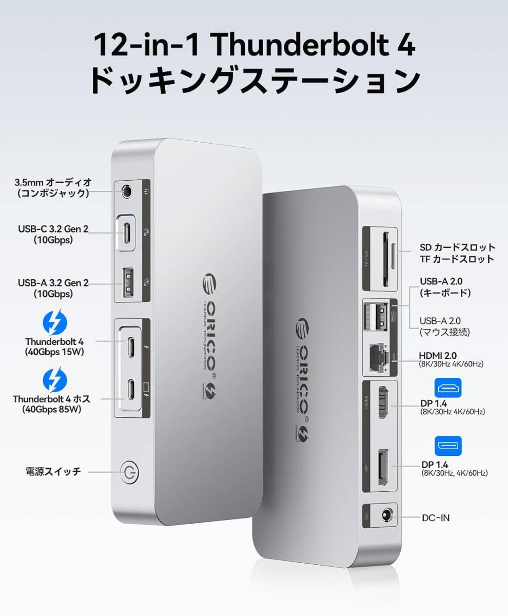 ORICO Thunderbolt 4 ドッキングステーション 12-in-1 Mac Mini M4 ドッキングステーション 40Gbps デイジーフェイス機能付き