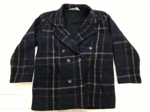 アップルハウス APPLE HOUSE レトロ トラッド チェック ダブル メルトン ピーコート ジャケット レディース ウール100% 裏地付き 紺 です。