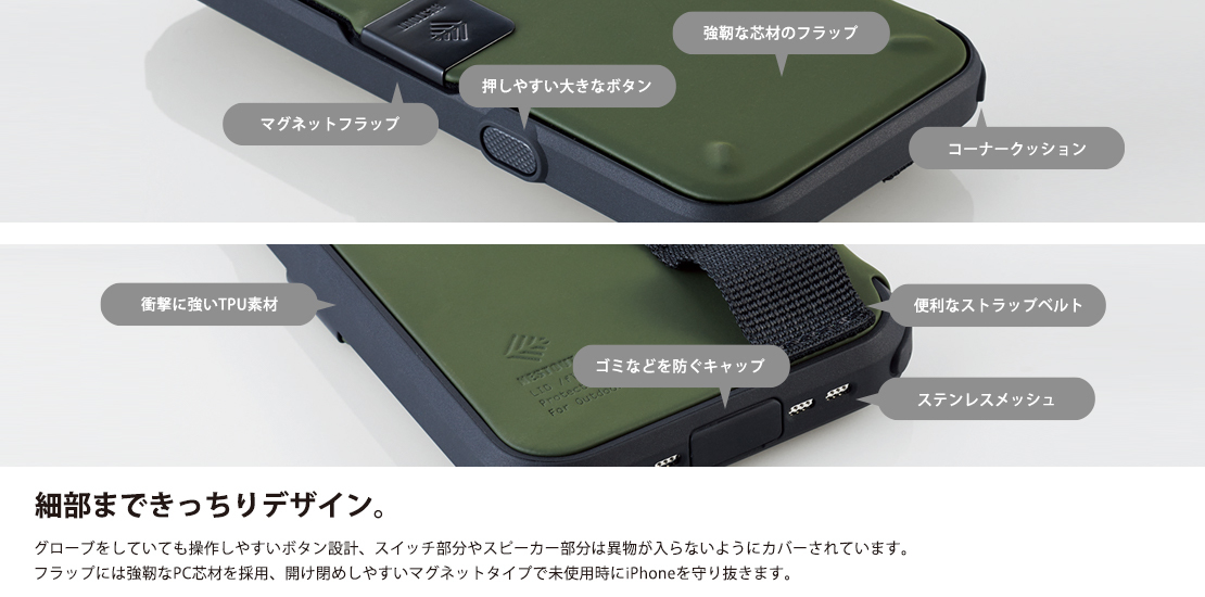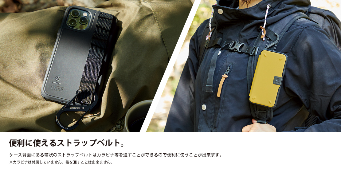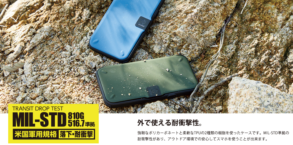 アウトドアシーンに最適なケース。液晶画面を守る強靭なフラップと異物侵入を防ぐコネクタキャップ、全方位耐衝撃設計で守られたNESTOUT LIDモデルです。