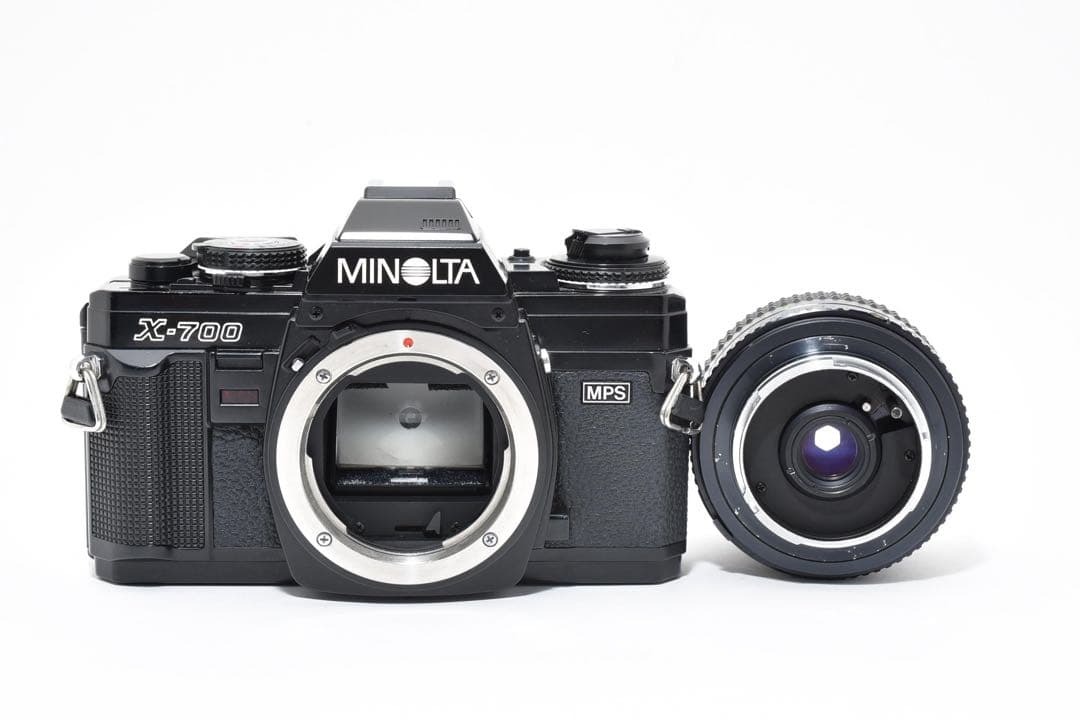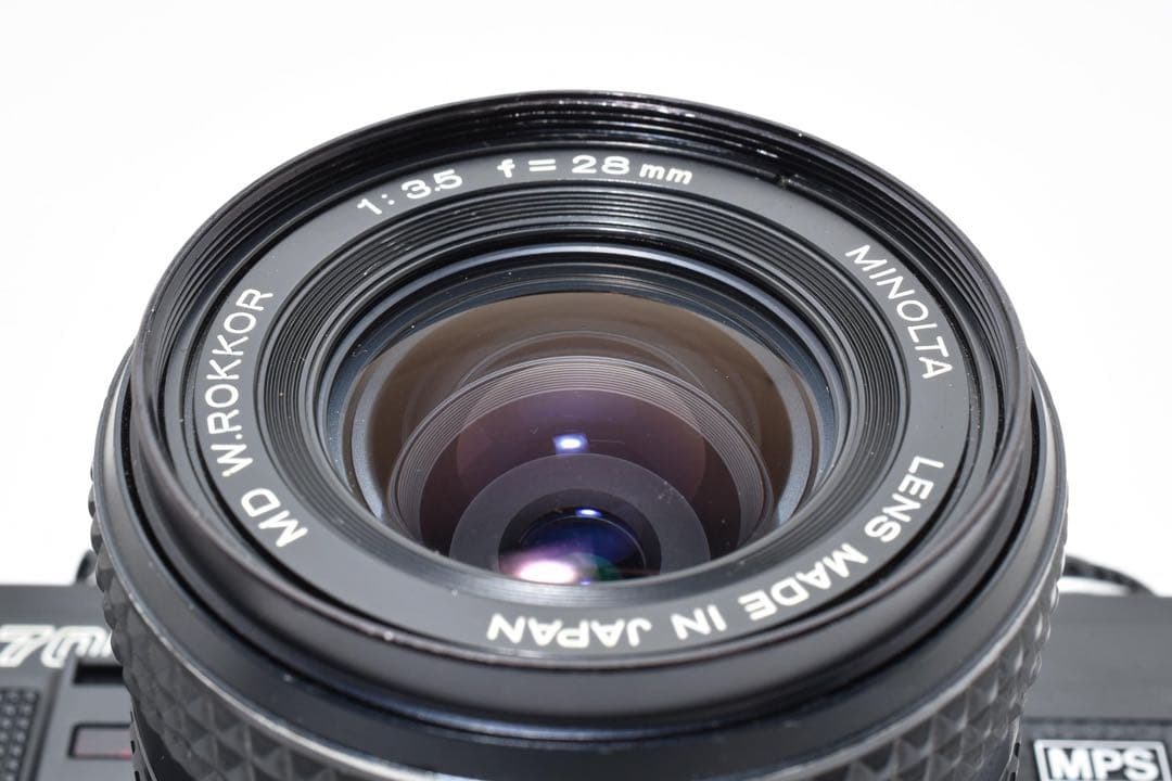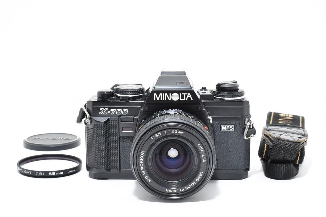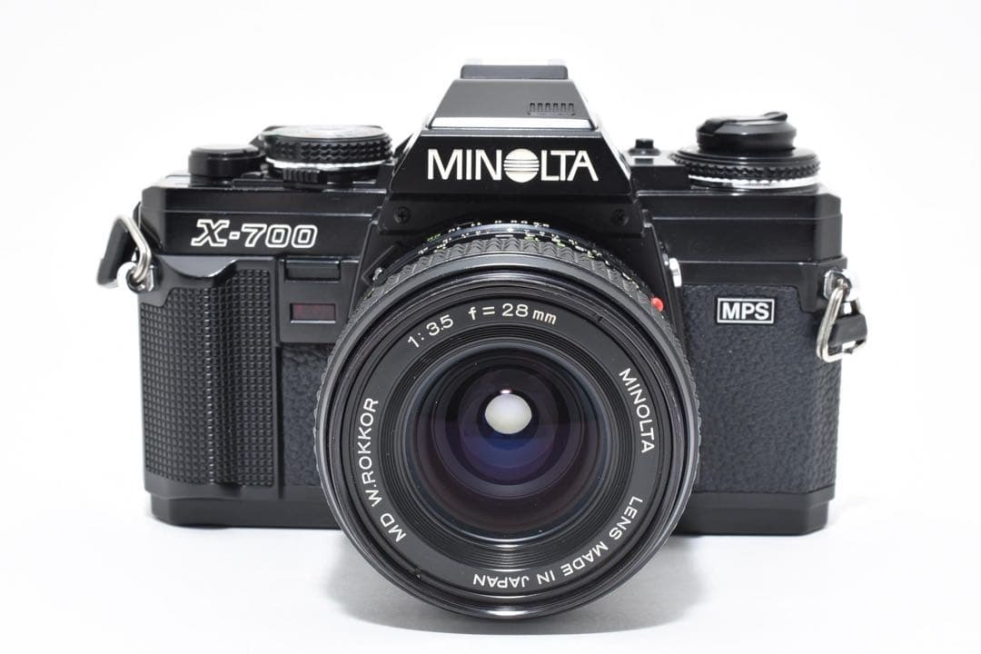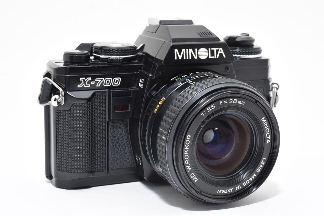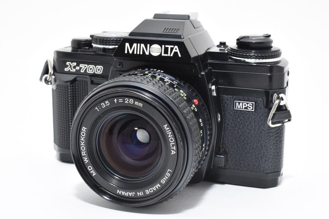MINOLTA X-700は、1980年代に人気を博したマニュアルフォーカス一眼レフカメラです。絞り優先AEやプログラムAEなど多彩な露出モードを搭載し、初心者から上級者まで幅広く対応します。MD 28mm F2.8レンズは、広角で使いやすく、スナップや風景撮影に最適です。フィルムカメラならではの描写を楽しめます。
