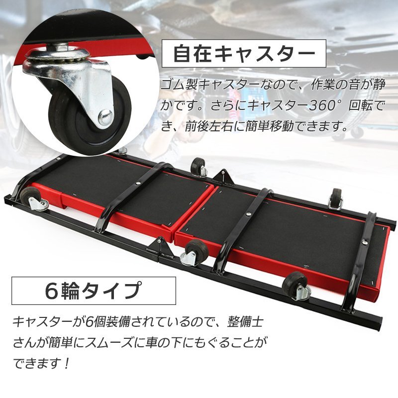 【即納】低床 クリーパー 6個キャスター付き 折りたたみ 作業椅子 自動車整備用 省スペース 整備工具 360度回転 メンテナンス