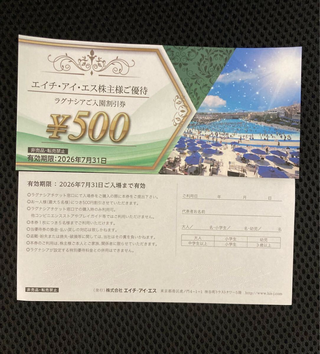 HIS エイチアイエス 株主優待券 ラグナシア ラグーナテンボス