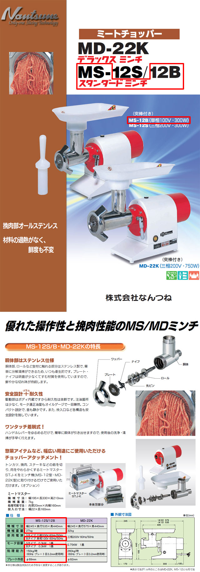 | メーカー・型式 | なんつね(南常鉄工) / スタンダードミンチ MS-12(B) | |