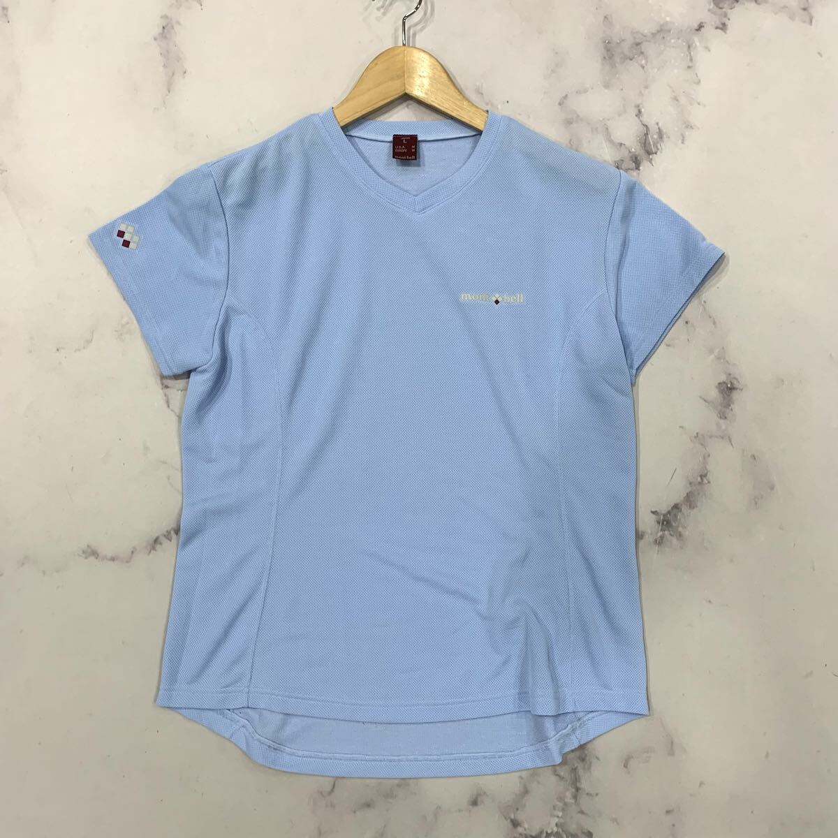 J ▼ 着心地抜群 '日本製' montbell モンベル 半袖 ロゴ メッシュ素材 ストレッチ Tシャツ L レディース トップス アウトドアウェア
