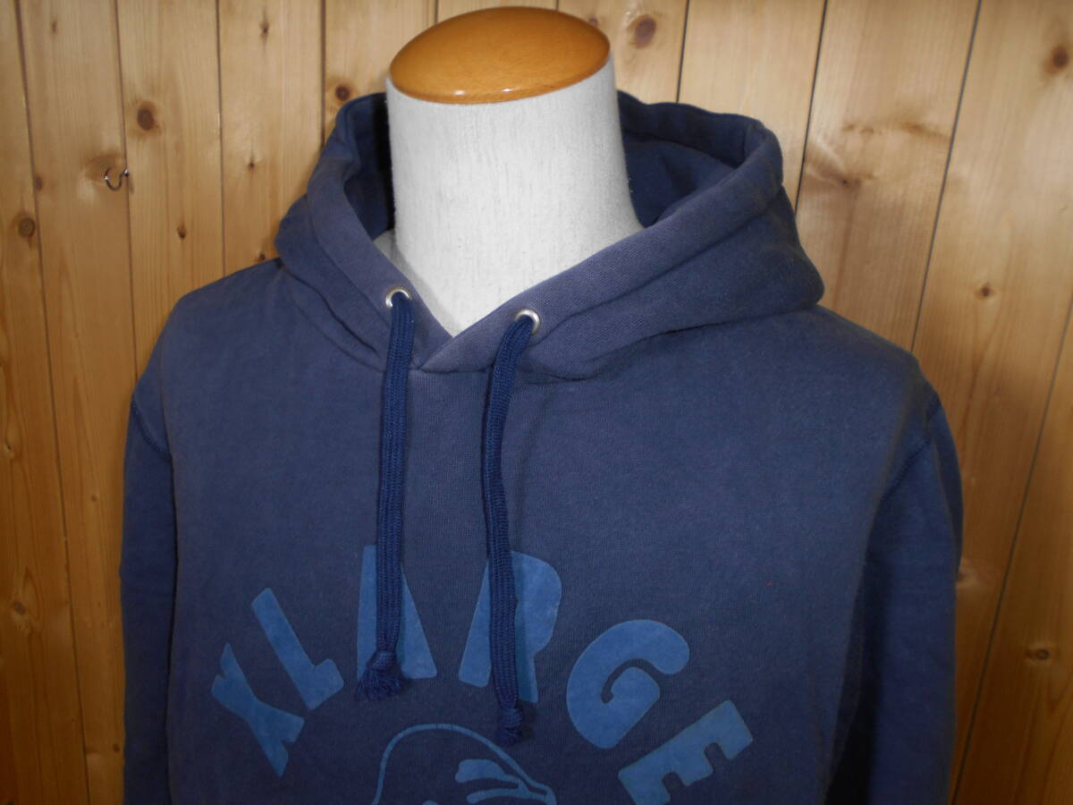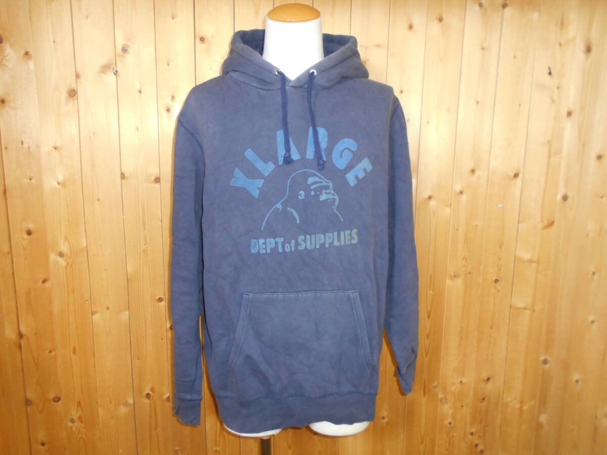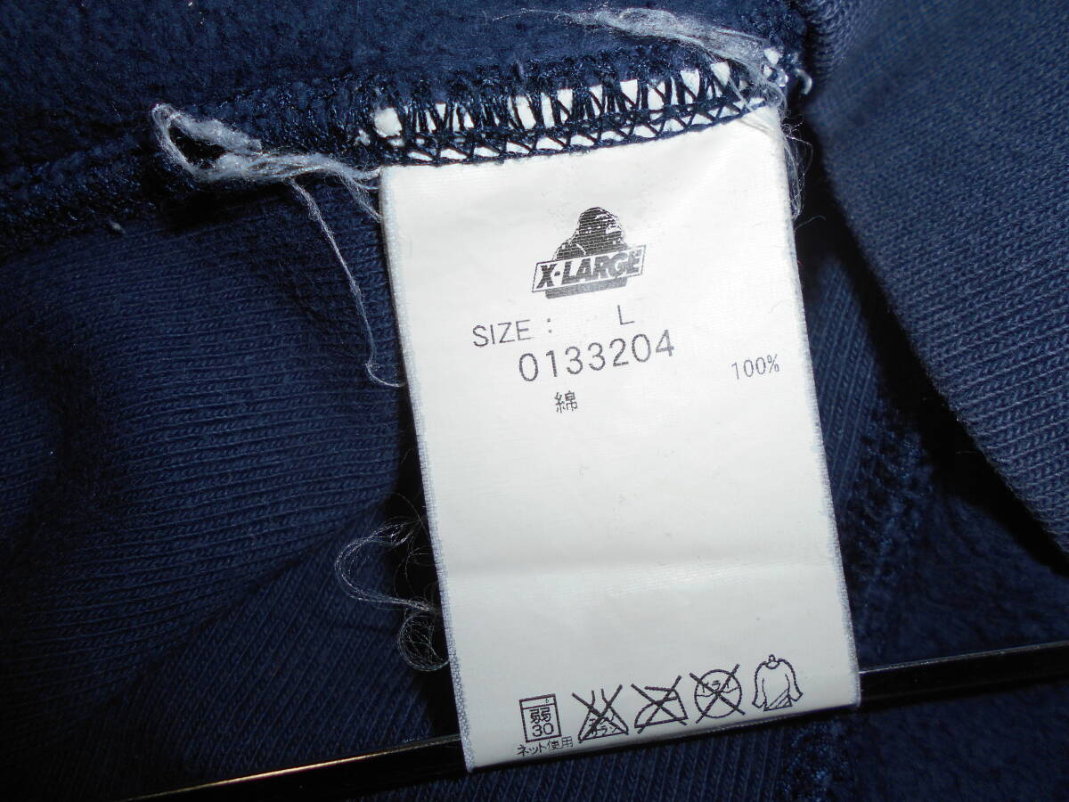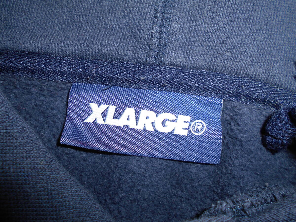 e221◆X-LARGE プリントロゴ スウェットフーディ◆エクストララージ 0133204 サイズL ネイビー ヘビーウエイト プルオーバー 7J