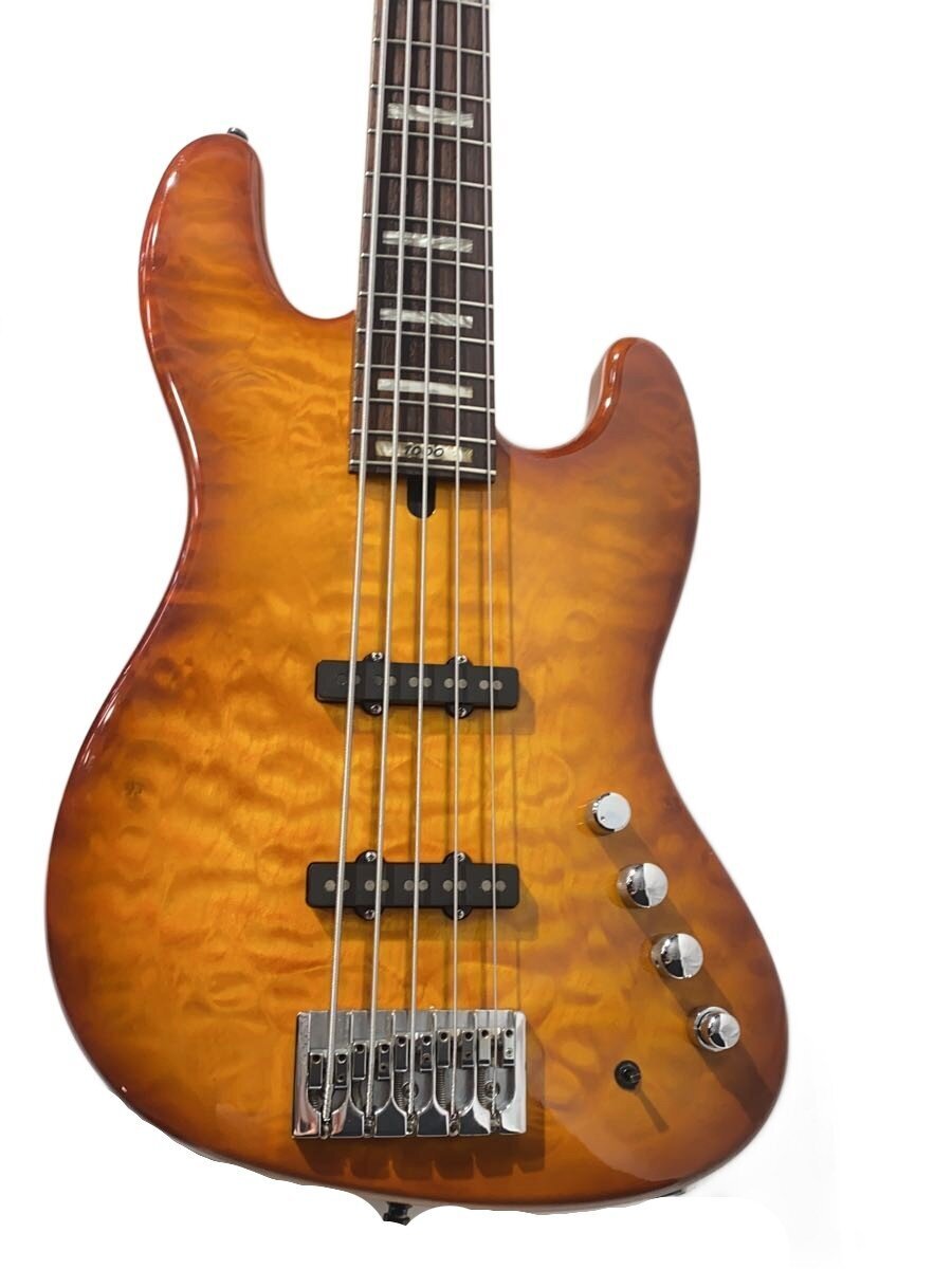 | ・トラスロッド余裕あり ・フレット残り7割程度 ・ペグ交換(HIP SHOT) ・ノブ3つ交換(Vol以外) ・ミニスイッチはミッドの周波数切替 ・ストラップピン交換 ・ボリュームポット交換 ・アクティブ/パッシブ切替 Body:Quilted Maple Top/Ash Back Neck:Maple Fingerboard:Rosewood/21F Radius:12/305R Weight:4.18kg Preamp:Bartolini NTMB PU:Duncan/SJ5s×2 【付属品】 History製ギグバッグ |