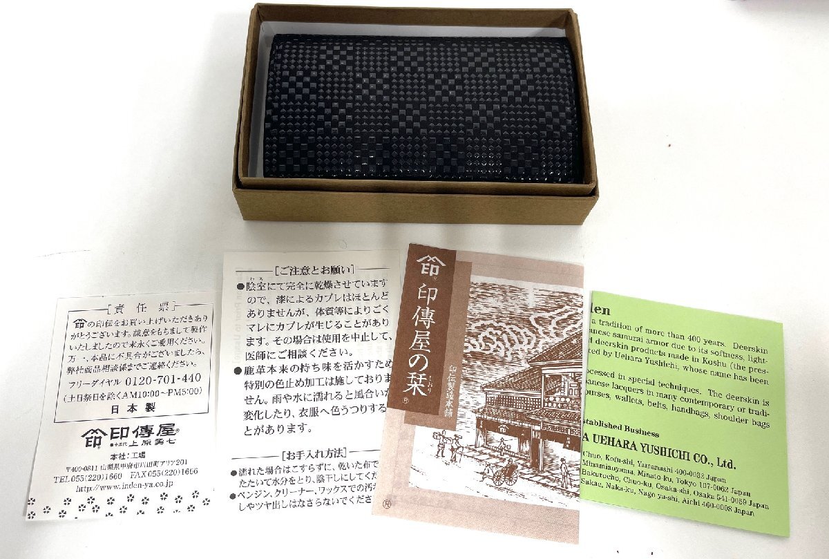 | 【L89599】カードケース 小銭入れ 2点セット 印傳屋 INDEN-YA 鹿革 市松模様 イタリア genuine leather コインケース 中古品 経年保管品 |
