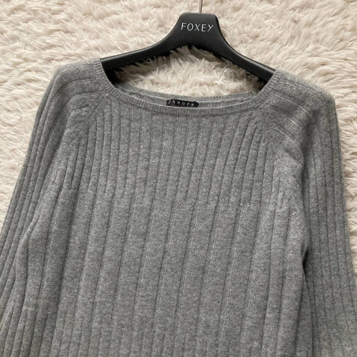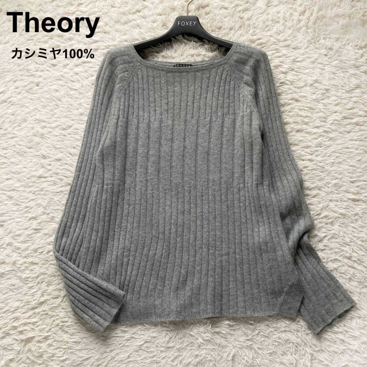 訳あり特価 Theory セオリー 高級 ピュアカシミヤ カシミヤ100% リブニット デザイン グレー 灰色 S/P レディース 大人 上質 オフィス カジュアル 使用感あり