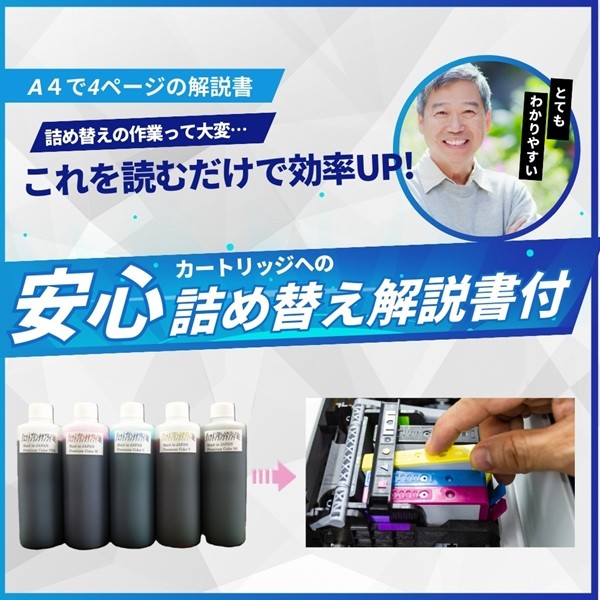 詳しい解説書付ですので、これなら更に安心してインクの詰め替えや交換をいただけると思います。