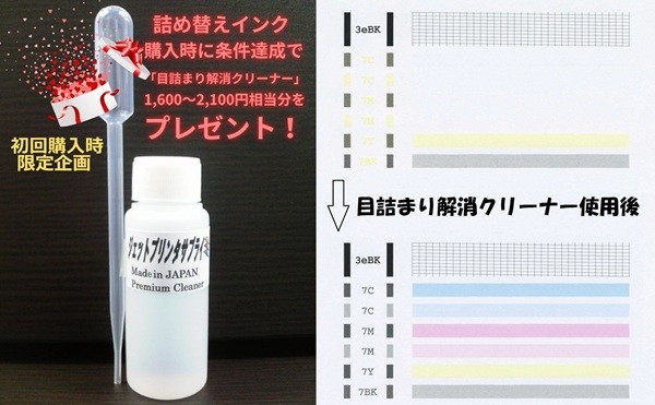 そこで、当店のインク自体の目詰まりは非常に少ないと思いますが、万が一、インク変更時や長期使用などの目詰まり発生に対応していただくために、