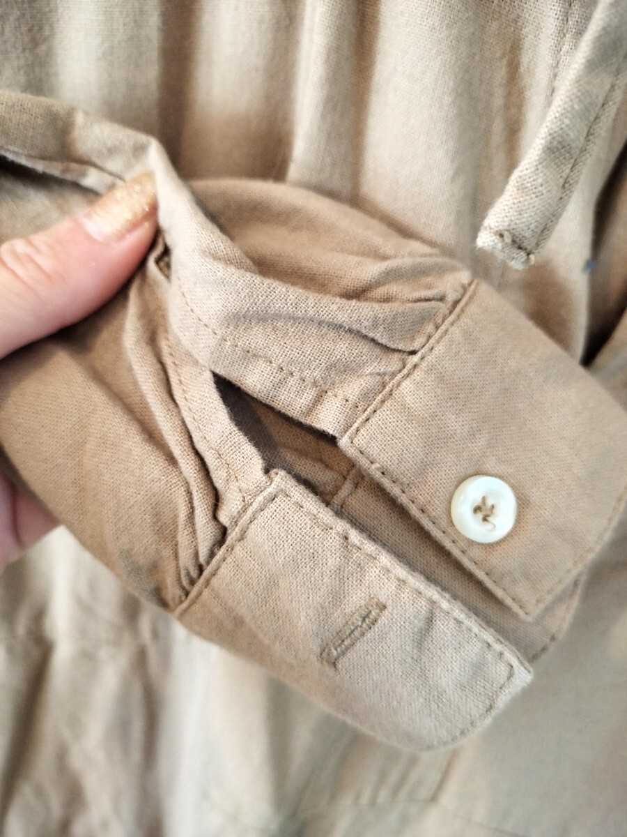 しっかりしたコットンで春、秋から冬まで着られました。インナーに色を入れて楽しめます。