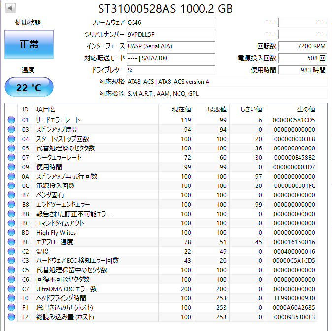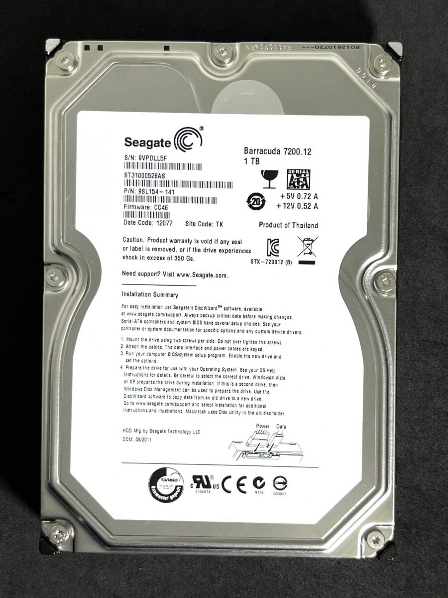 ★ 1TB ★ 【使用時間:983h】 ST31000528AS / Seagate BarraCuda 7200.12 良品 3.5インチ 内蔵 HDD SATA 1000GB [管理■5BLL]