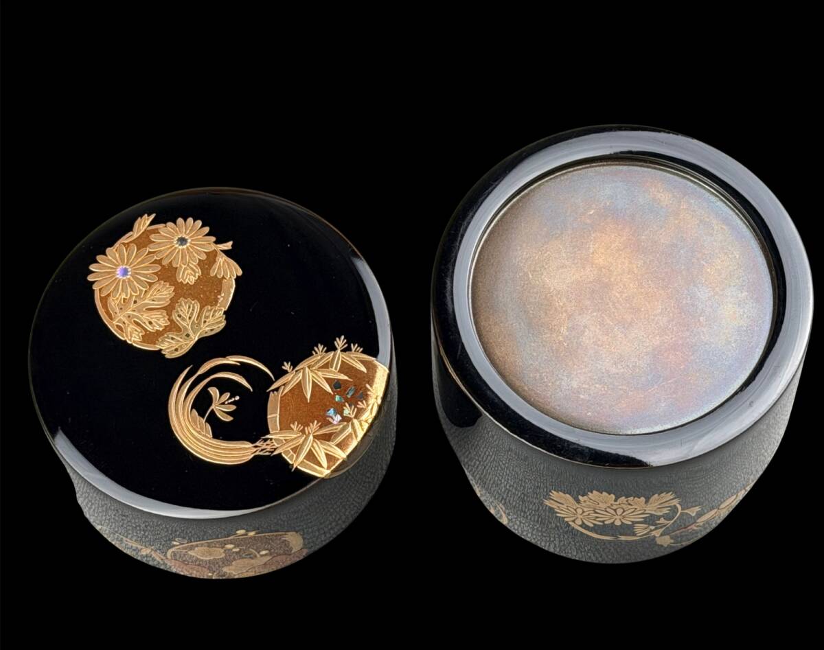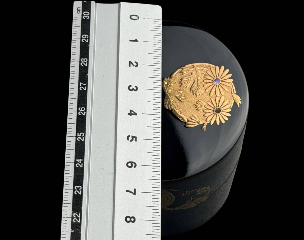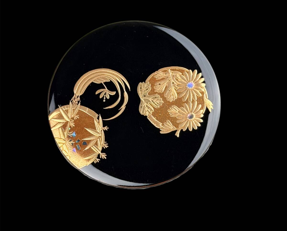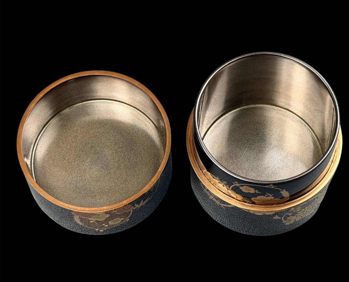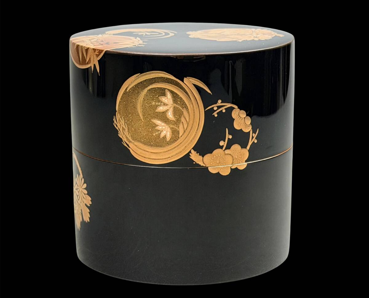 【偲】蒔絵師 細川司光 棗「花丸」蒔絵 中次 山中塗 内銀地 共箱 茶道具 高さ約6.7㌢ e-41