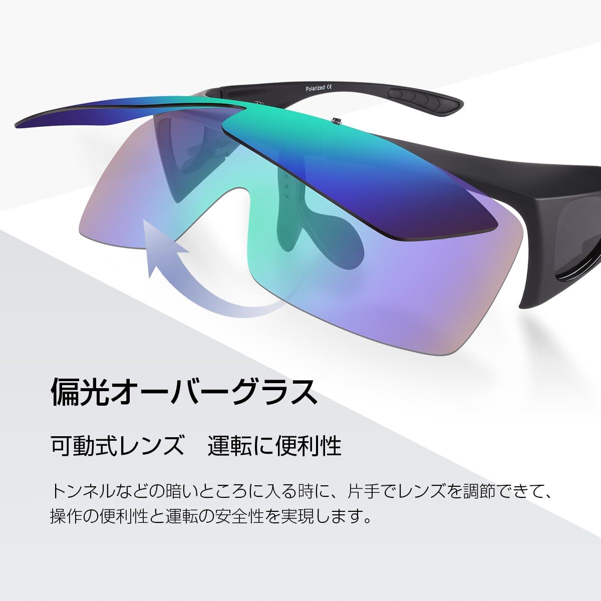 [Br'Guras] オーバーグラス 偏光サングラス メガネをかけたまま対応のサングラス 跳ね上げ式 UV400 紫外線カット サイクリング、釣り、ランニング、野球 格好いいサングラス