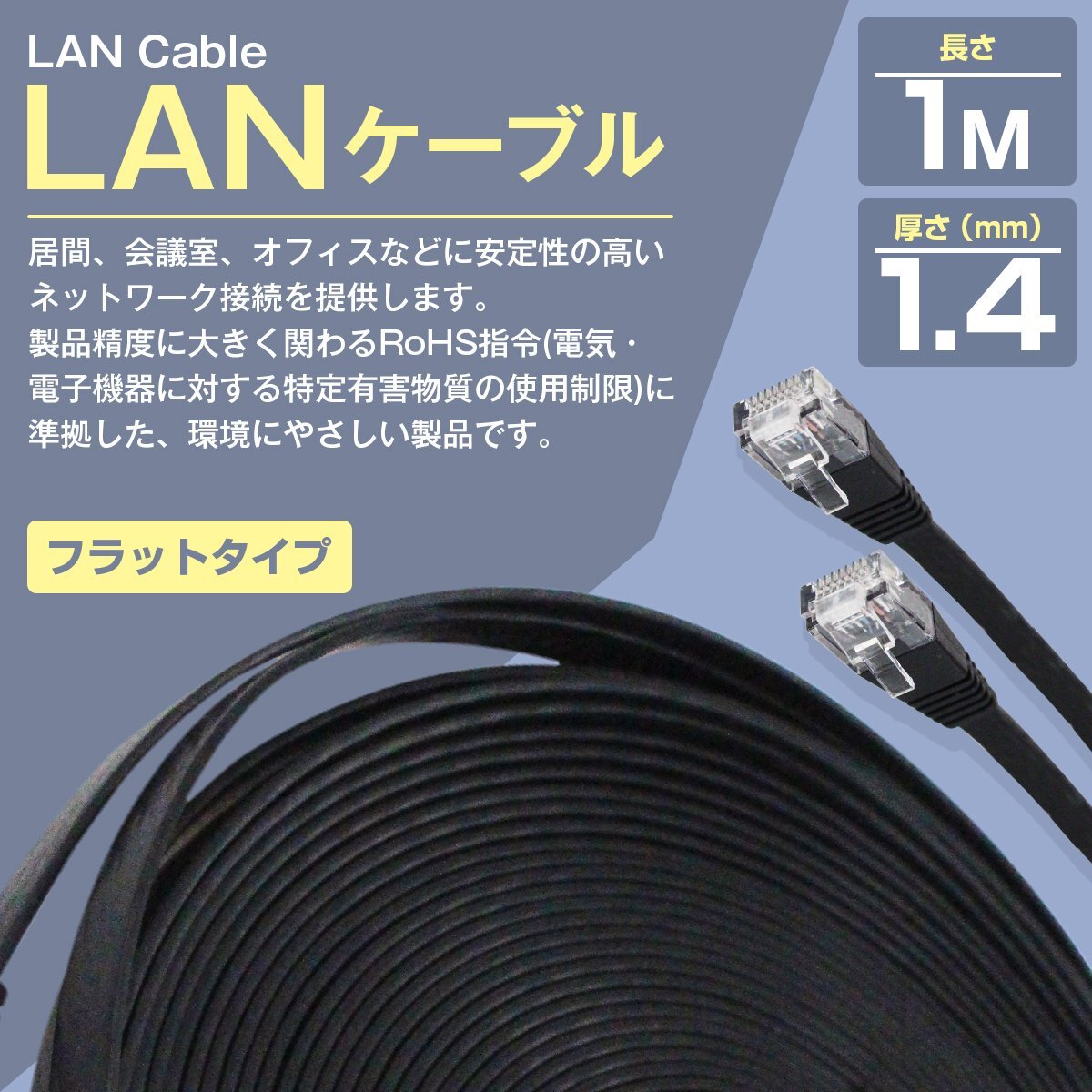 CAT6 カテゴリ6 薄型スーパーフラット LANケーブル 1m 100cm ブラック パソコン インターネット PC Wi-Fi WiFi ルーター 無線 有線 配線