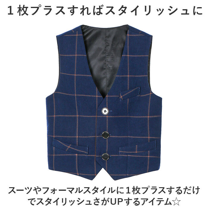 | 商品説明 | ・・スタイリッシュなフォーマルスタイルが完成する☆キッズベストが登場。 ・【1枚プラスすればスタイリッシュに】 ・スーツやフォーマルスタイルに1枚プラスするだけでスタイリッシュさがUPするアイテム☆ ・【タキシード風スタイルの着こなし☆】 ・カッチリめのデザインで、タキシード風の着こなしが叶うベスト。お呼ばれスタイルにぴったり! ・【ジャケットINで上品さをUP】 ・ジャケットの中に着ることで、上品さがUP!オールシーズン着用できるのも嬉しいポイント。 ・【1つあると幅広いシーンで使える】 ・冠婚葬祭はもちろん、入学式、発表会、お誕生日の記念撮影など。1つあるととても便利! ・【お好みのカラーが選べる♪】 ・クールから優しいカラーまで、幅広いバリエーションをご用意!お好みが見つかる! |