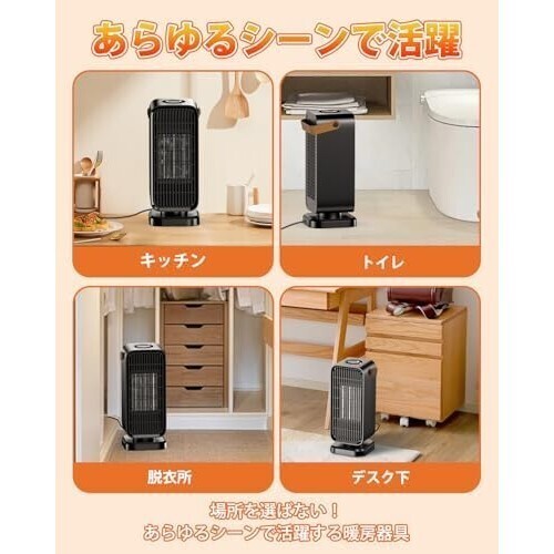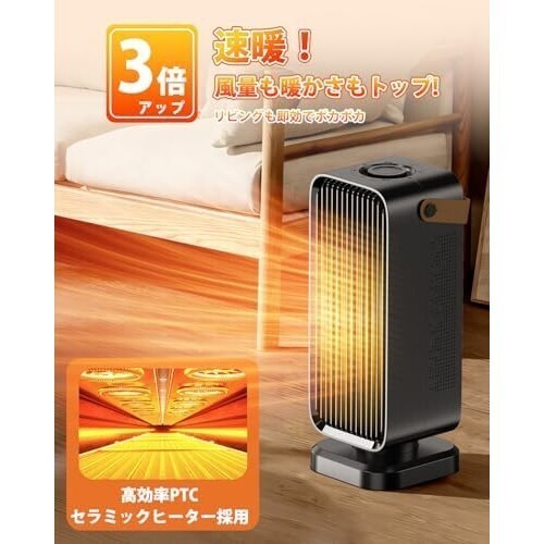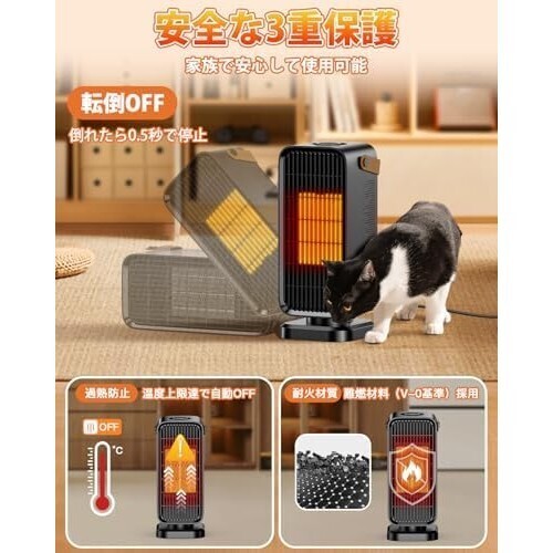 ヒーター 黒です Yokepro セラミックヒーター【2025冬新登場】 小型 速暖 電気ファンヒーター 省エネ節電 PSE認証済 3段階温度調節 大風量 操作簡単 ダイヤル式 転倒OFF 過熱保護 耐火素材 ミニ 暖房器具 電気ストーブ 静音 コンパクト 持ち運び 足元 寝室/脱衣所/トイレ/洗面所/オフィス/キッチンに適用 窓下結露対策 寒さ対策 日本語取扱説明書(ブラック)