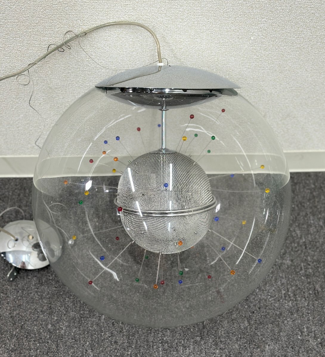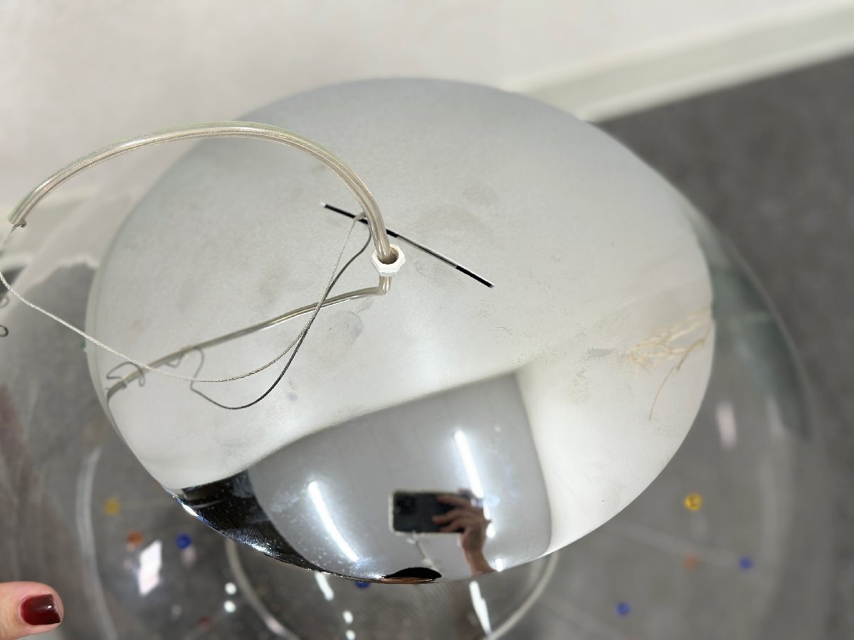 こちらは1900年代から2000年代の作品のようでして、透明なガラスシェードの中にまるでカラフルなタンポポのようなカタチをしたデザインのペンダントランプ。