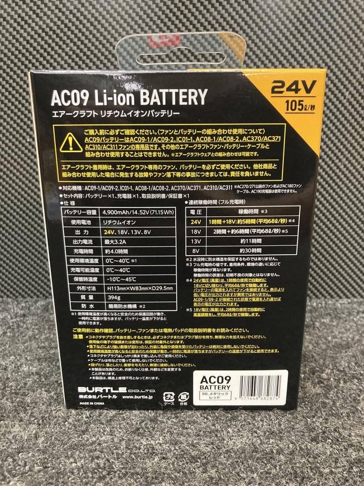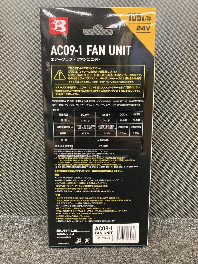 バートル BURTLE ■商品名 空調服用ファン+バッテリー ■型番 AC09+AC09-1 |