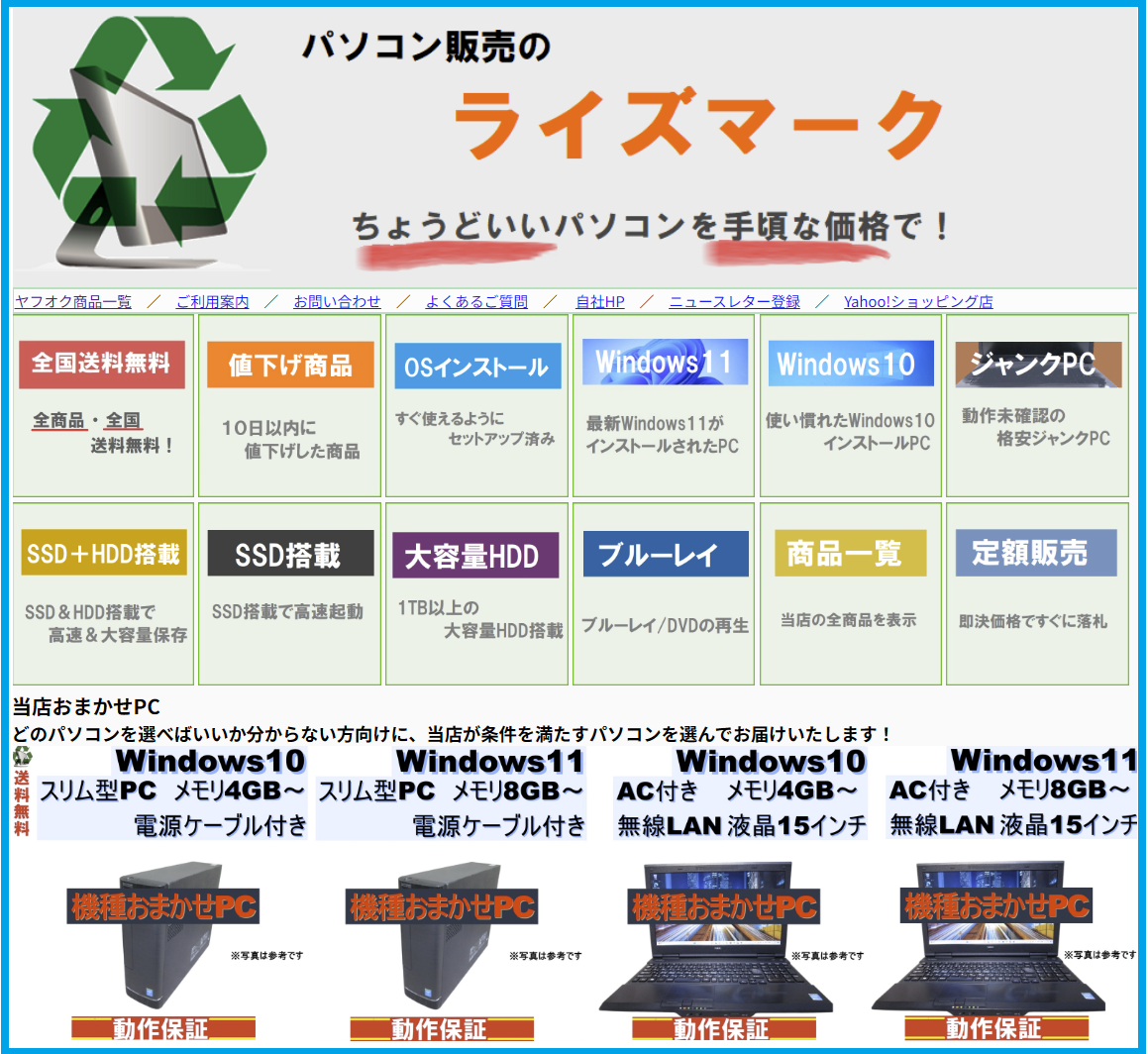 | 全商品 / ノートパソコン / デスクトップパソコン / 液晶モニター PC周辺機器 (CPU / HDD / SSD / メモリ / HDDマウンタ / キーボード・マウス / ACアダプター) 携帯電話(スマホ / タブレット / ガラケー / データ通信) | ||