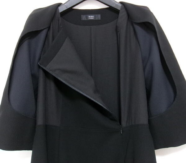 | ◆自由区 FORMALの【ウォッシャブル対応】ウォッシャブルドビー ワンピース新品です。 ワンピースの上身頃を開くと、衿元から下りるファスナーが隠されており、背中に腕を回すことなく脱ぎ着ができる機能的な仕様。両サイドに便利なポケット付き。シルエットは広がりすぎないセミフレアーラインで、スッキリと見えます。ジャケット同様、別布サテンを切り替えに配したメリハリのあるデザインです。 ジャケットとワンピースのアンサンブルのセット商品ですが、ジャケットがありません。品質タグにカットがあります。ご理解の上、ご入札をお願いいたします。 定価は¥80.300(ジャケットとセットで)です。 表記サイズ 38 実寸サイズ 肩幅:38cm 身幅:44cm 着丈:108.5cm 袖丈:39.5cm ※すべて平置きにして採寸しております。 採寸は参考程度とさせていただきます。 カラー ブラック 素材 ・表地 ポリエステル100% ・別布 トリアセテート85% ポリエステル15% ・裏地 ポリエステル |