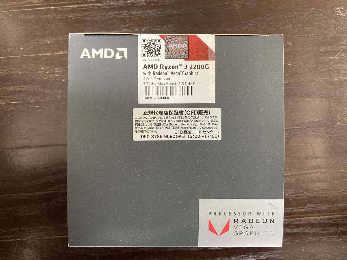 新品未開封のAMD Ryzen 3 2200G BOXになります。