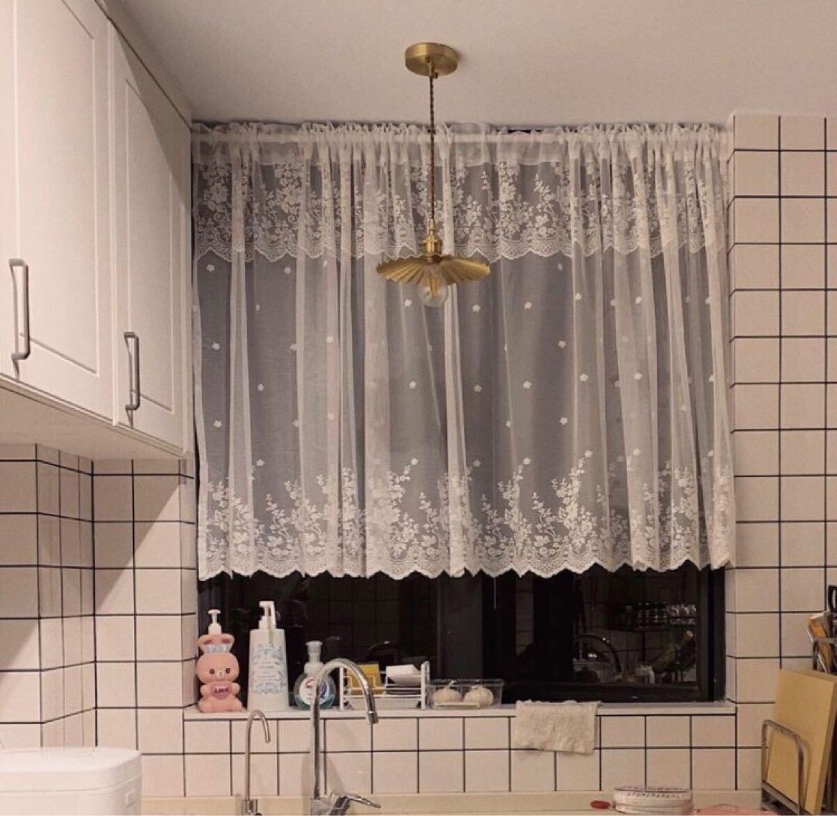 上品で軽やかな印象を与えてくれるレースカーテンはお部屋の雰囲気づくりに一役買ってくれます。程よく光を取り込んでくれるので明るいお部屋に。どんなお部屋とも調和しやすいレースの小窓カーテン。