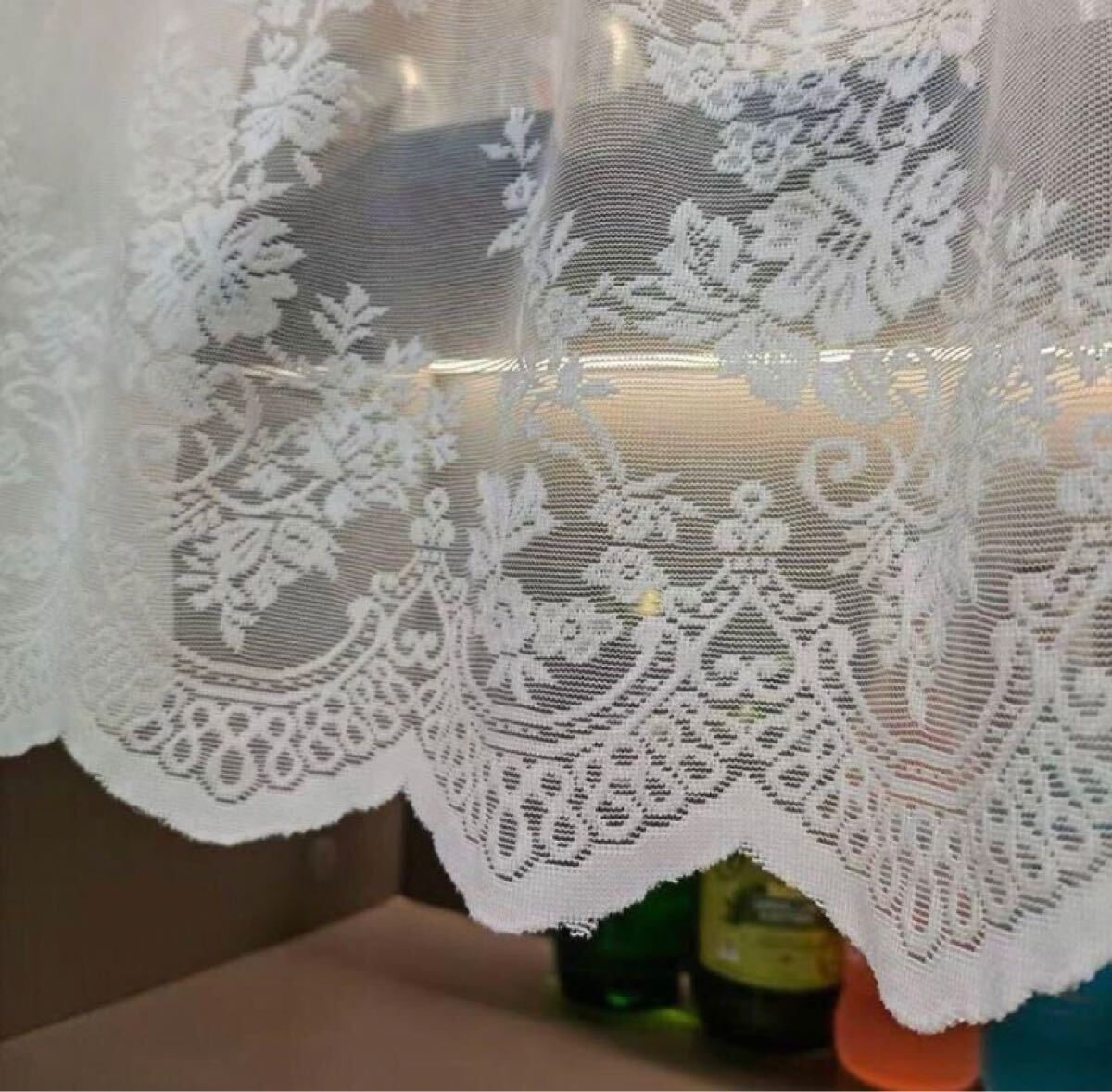 レース素材でお部屋を上品に彩ってくれる小窓カーテンです。小窓や戸棚の目隠し、インテリアのワンポイントにお使いください。