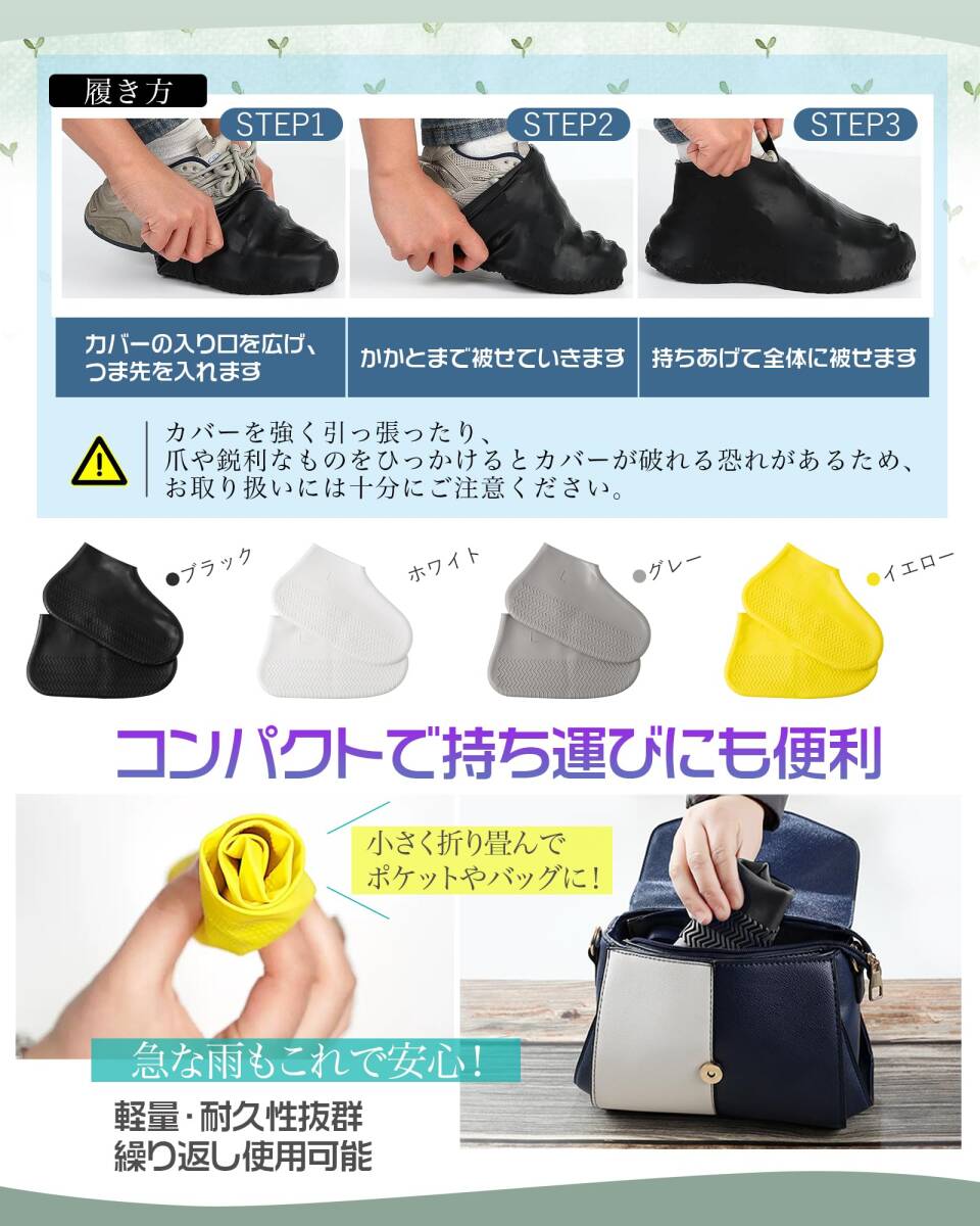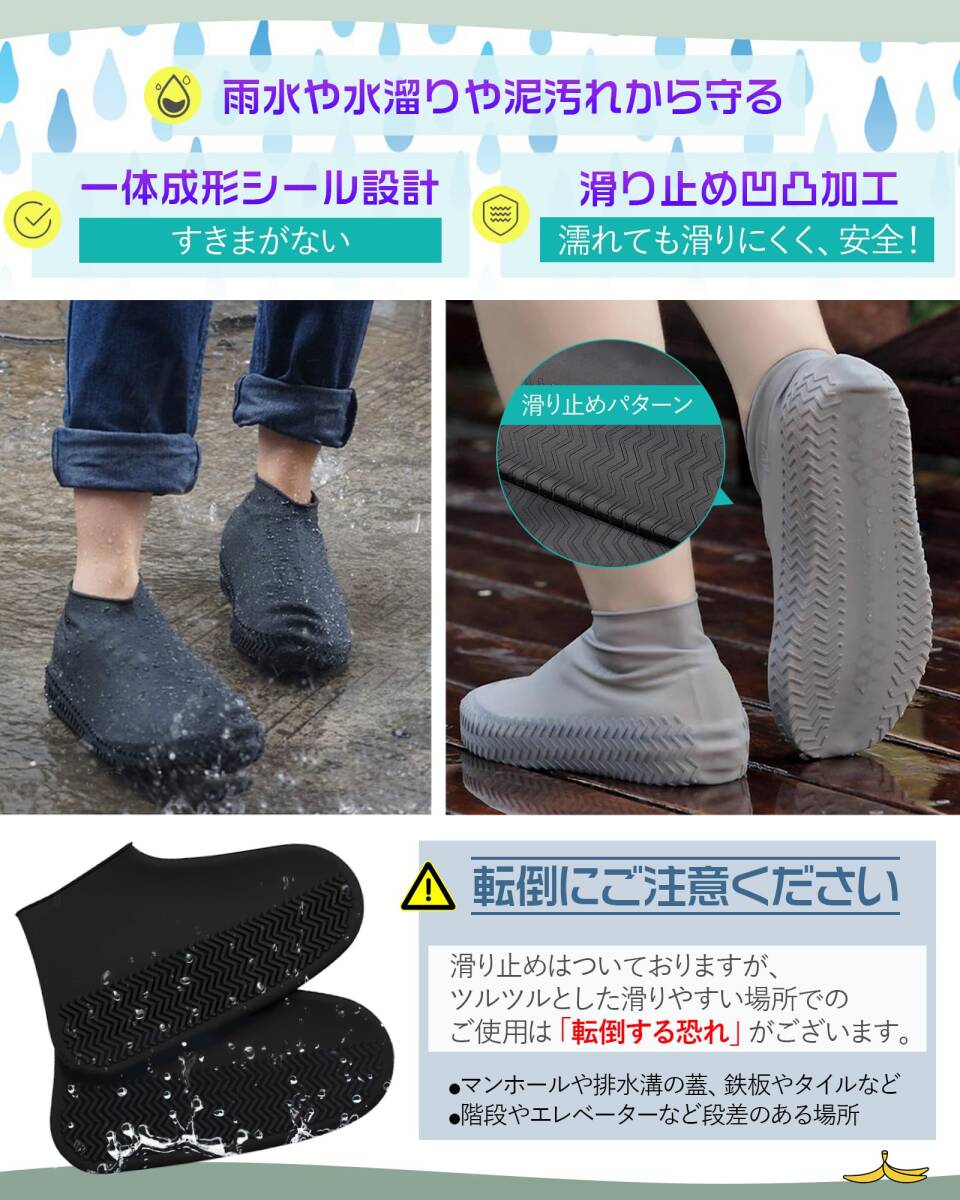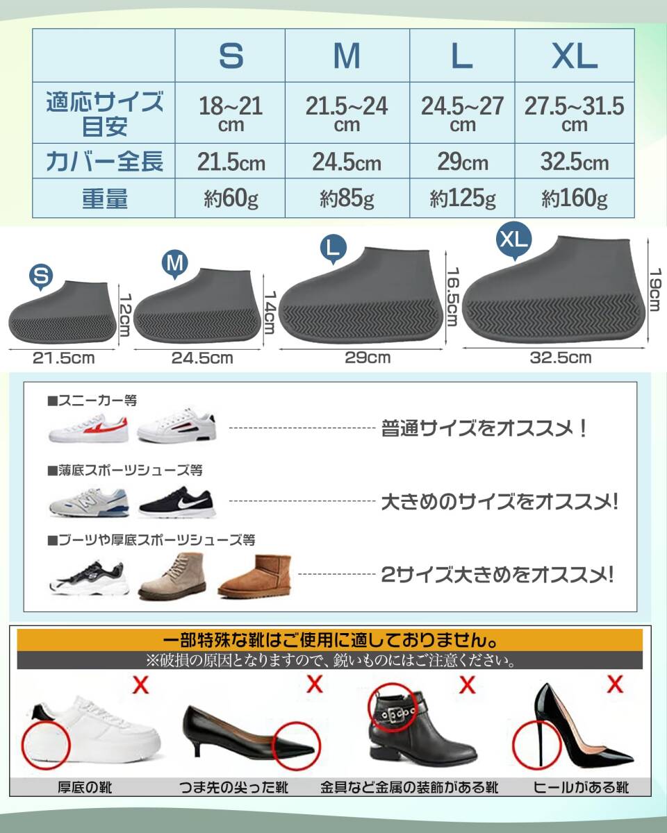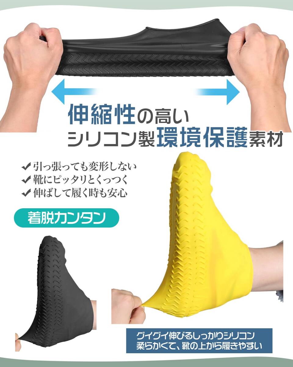 【優れた伸縮性・一体成形隙間ない】伸縮性の高いシリコン製環境保護素材で引っ張っても変形し辛く、着脱もカンタンにおこなえます。一体成形シール設計で隙間がありません。靴にピッタリとくっつき雨の侵入を防ぎます。通勤、通学の際に、雨の日の泥水や雪の日の水滴から大事な靴を綺麗に守ってくれるます。
