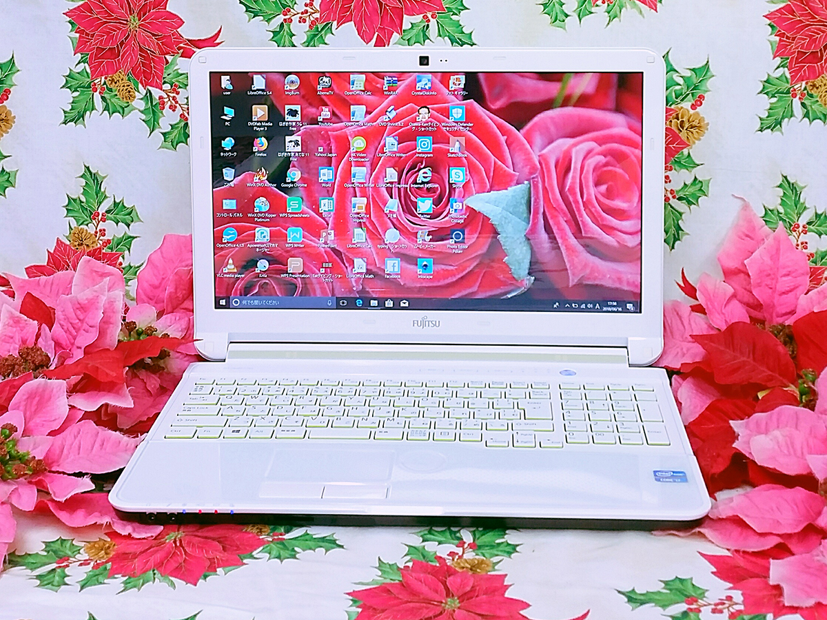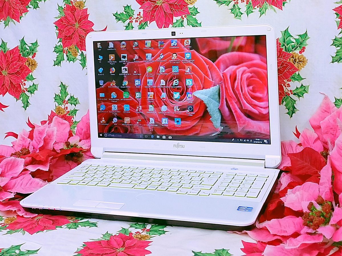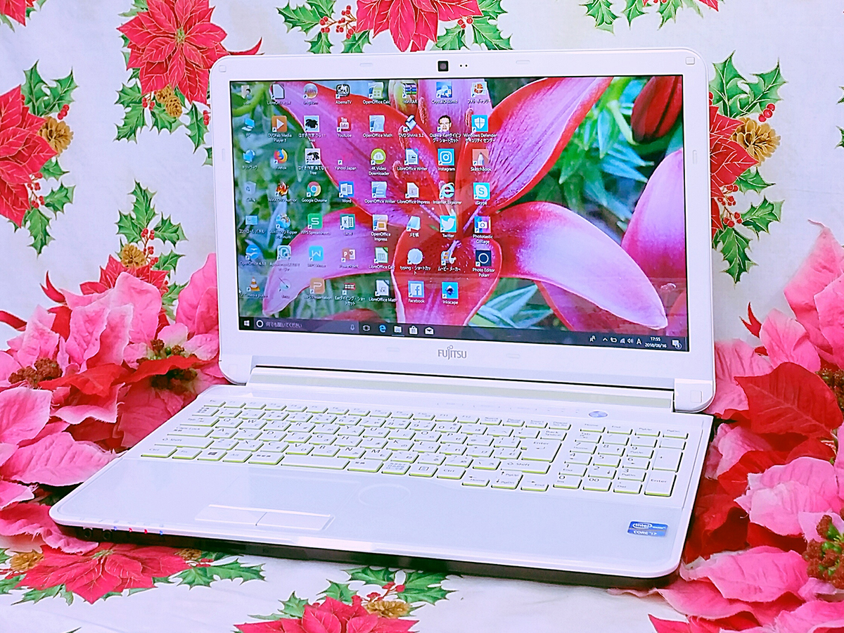 大画面15.6インチワイド液晶搭載!高年式大人気富士通の洗練されたスタイリッシュな大人のデザインが美しいホワイト色のLifebookノートパソコン!