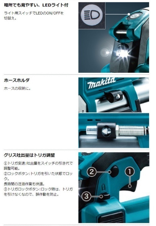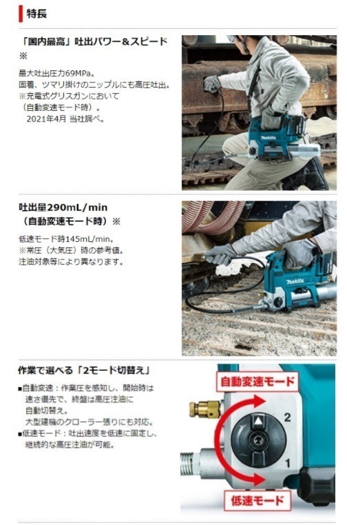 ●「国内最高」吐出パワー&スピード※充電式グリスガン(自動変速モード時)2021年4月マキタ調べ