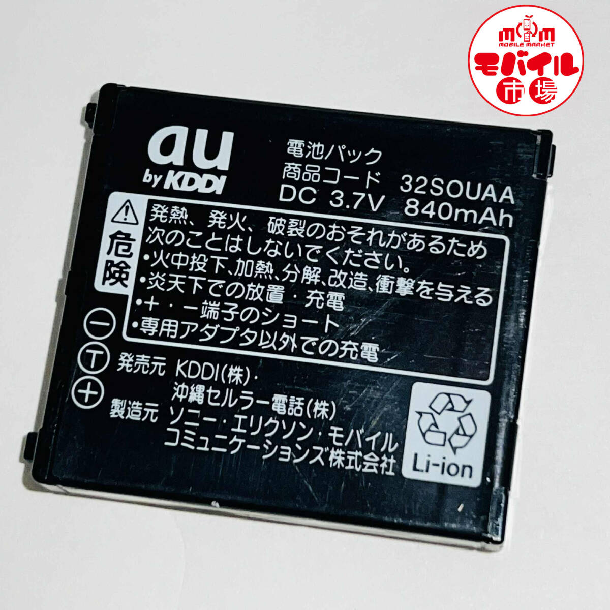 使用品名 : au 純正電池パック 32SOUAA ソニーエリクソン製 状 態 : 充電確認済み・中古・クリーニング済み。 |