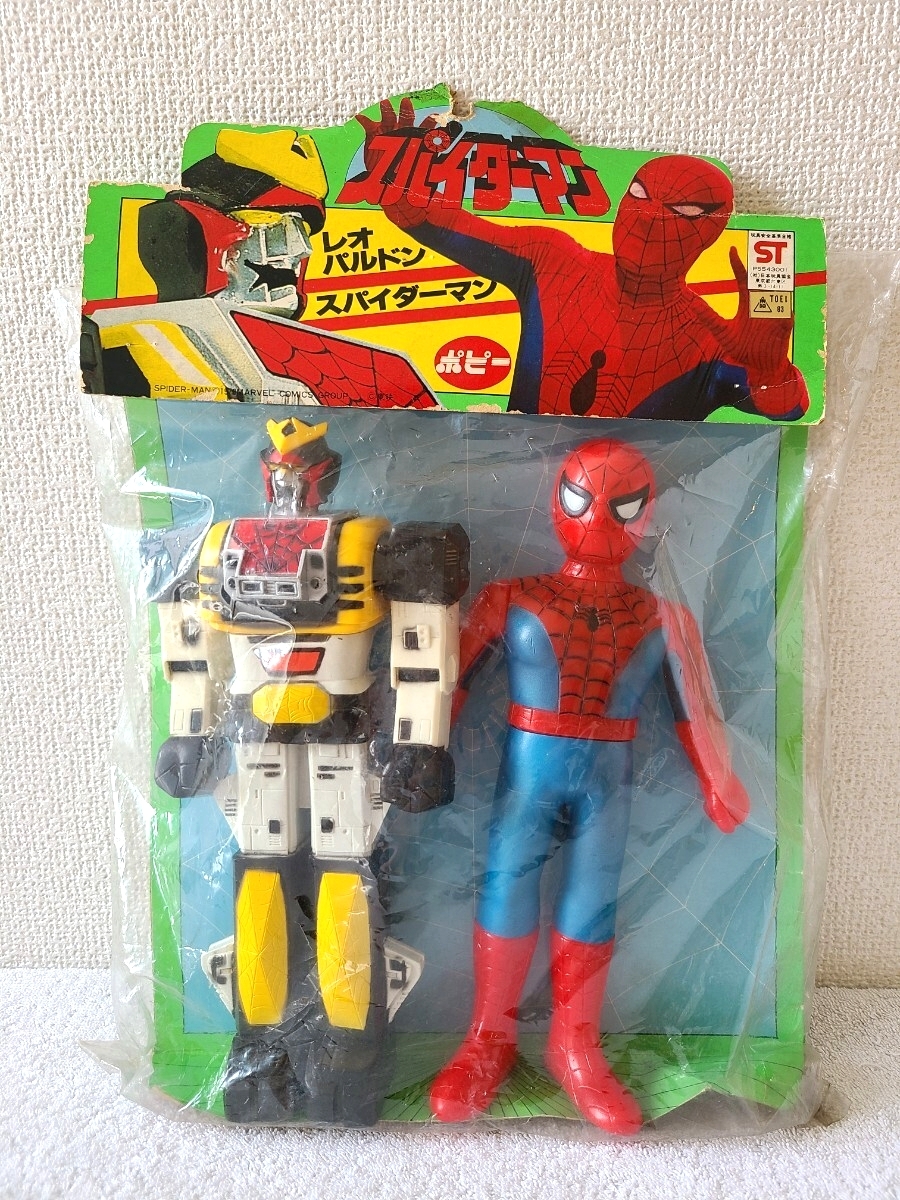 美品 ポピー スパイダーマン & レオパルドン スタンダードサイズ レトロソフビ 1978 東映版 パッケージ付き 希少 特撮 フィギュア 当時物