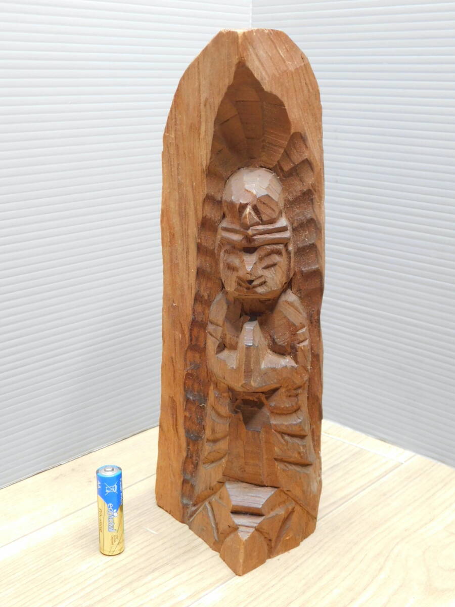 【円空彫り 仏像】木彫り 銘あり 約28cm/M385