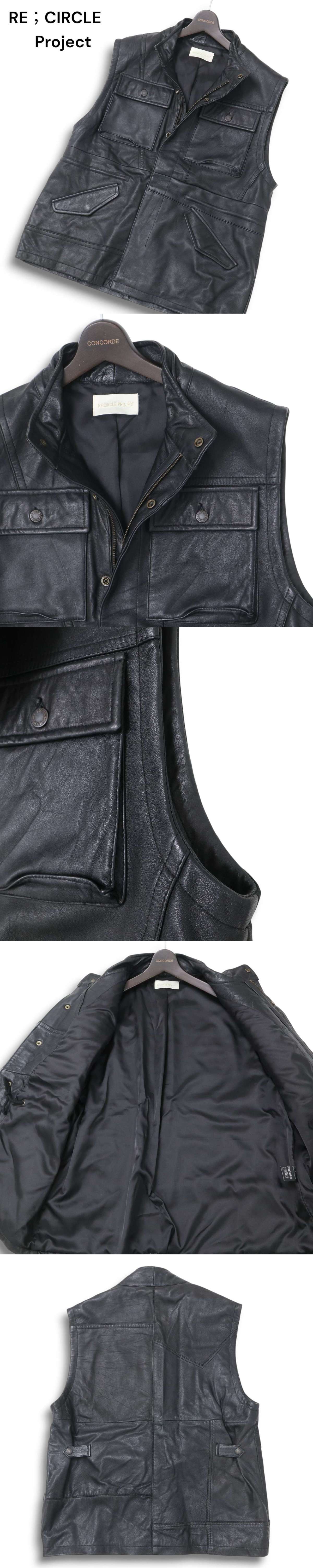 RE:CIRCLE PROJECT 秋冬 本革★ リアル レザー ジップ ベスト Sz.L位 メンズ 黒