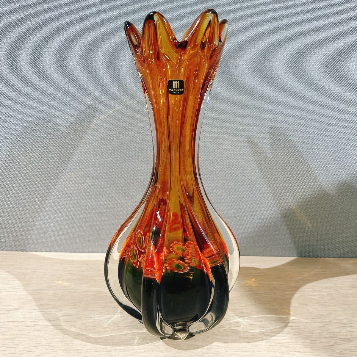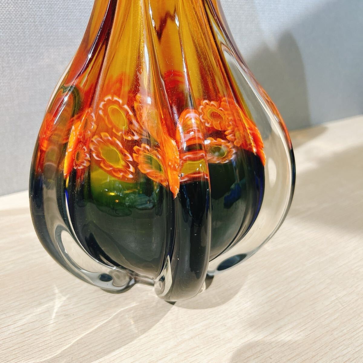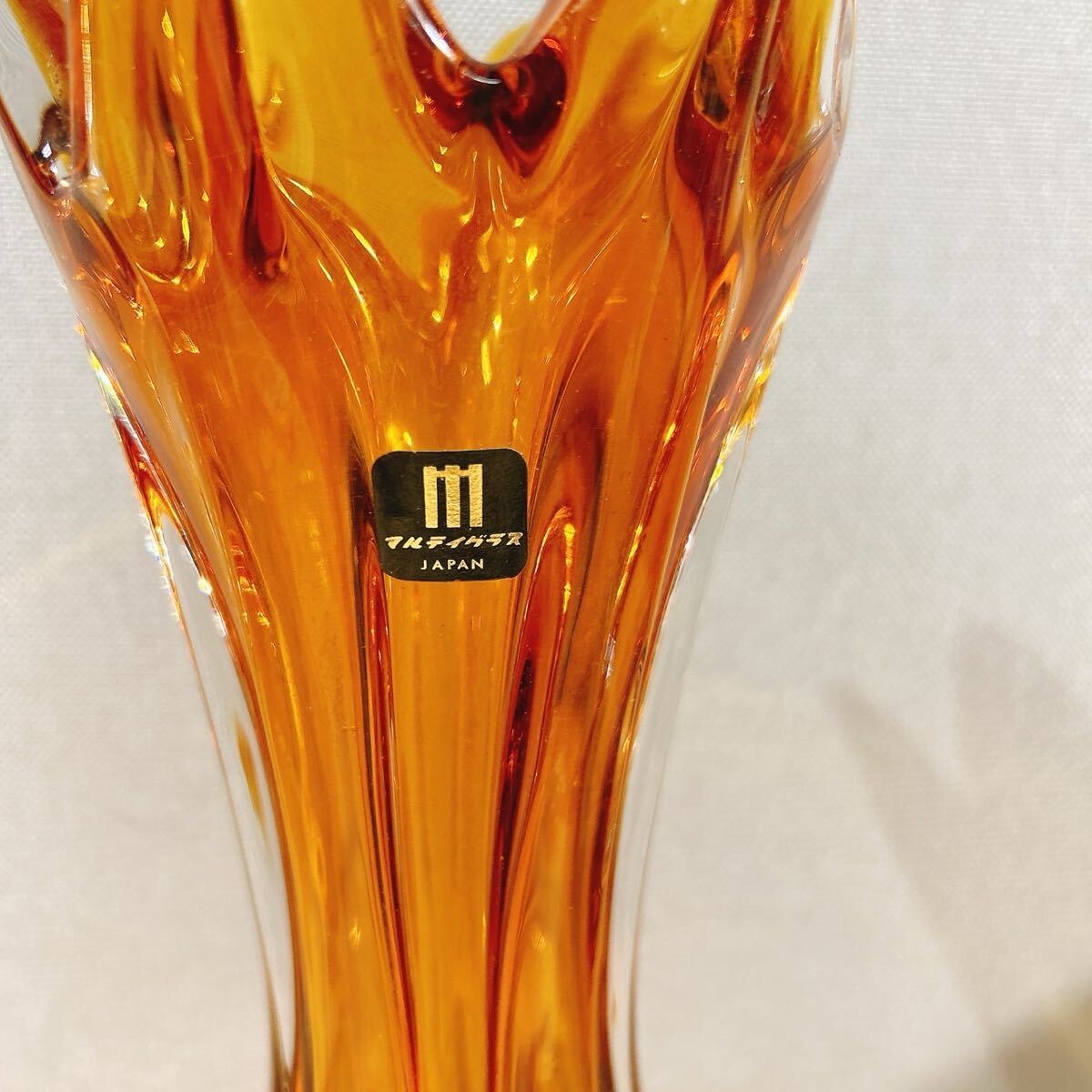 中古品 飾り壺 花瓶 フラワーベース マルティグラス ガラス オレンジ オブジェ
