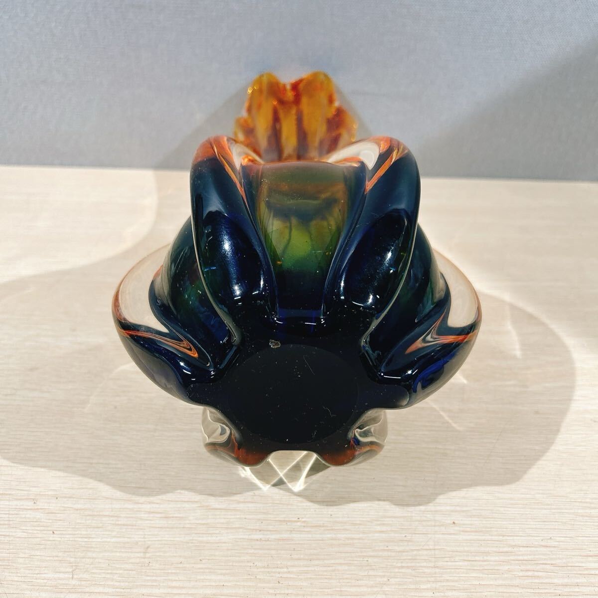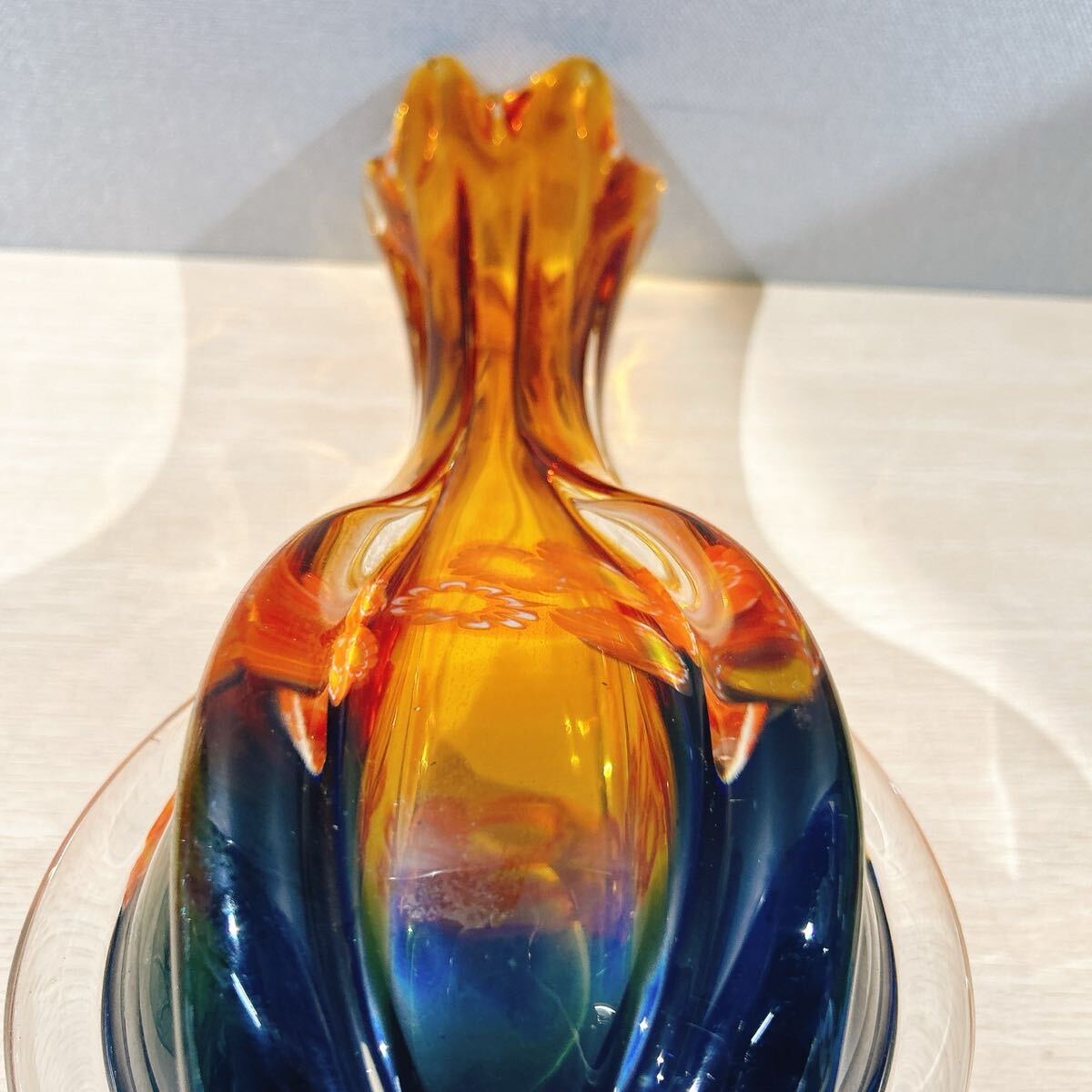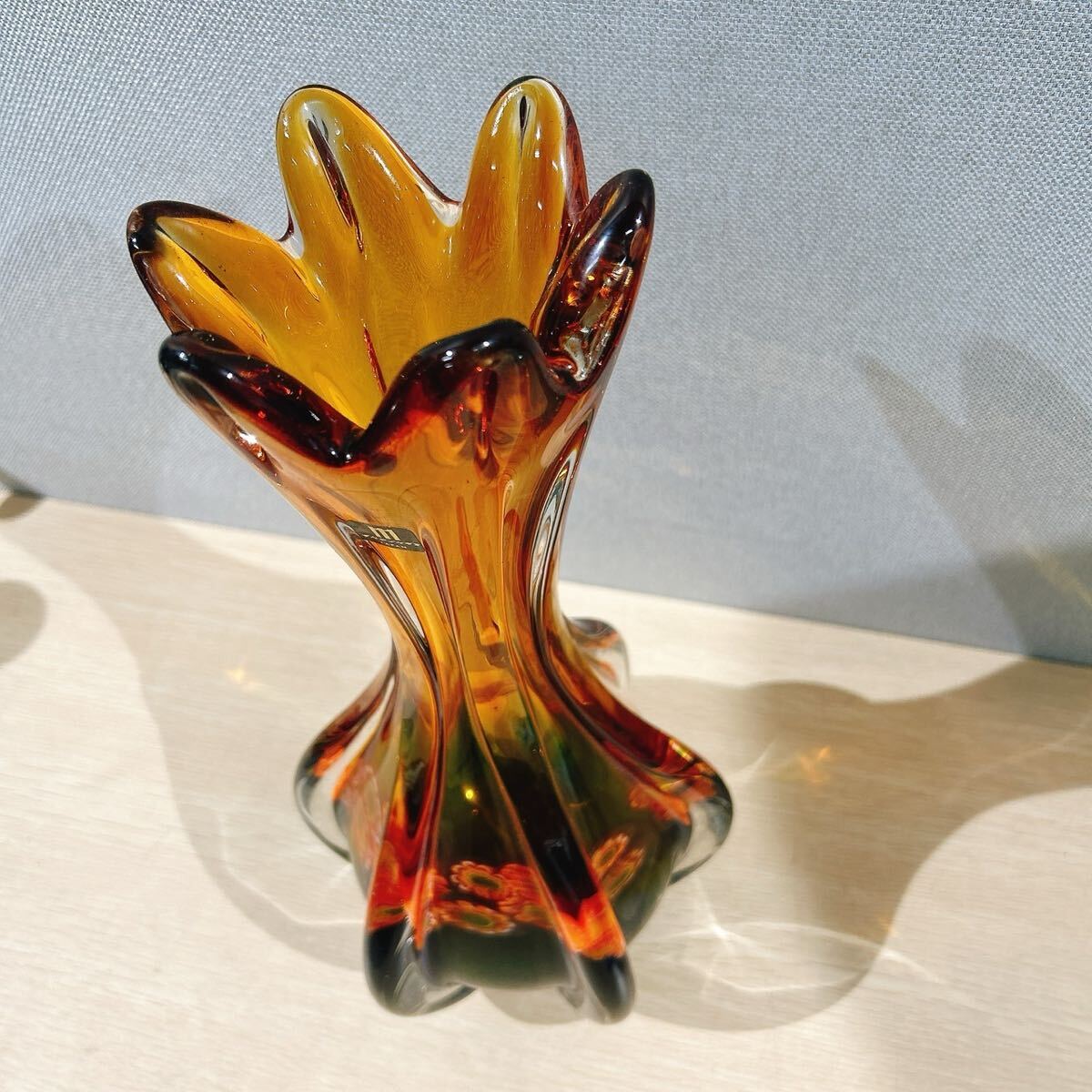 中古品 飾り壺 花瓶 フラワーベース マルティグラス ガラス オレンジ オブジェ