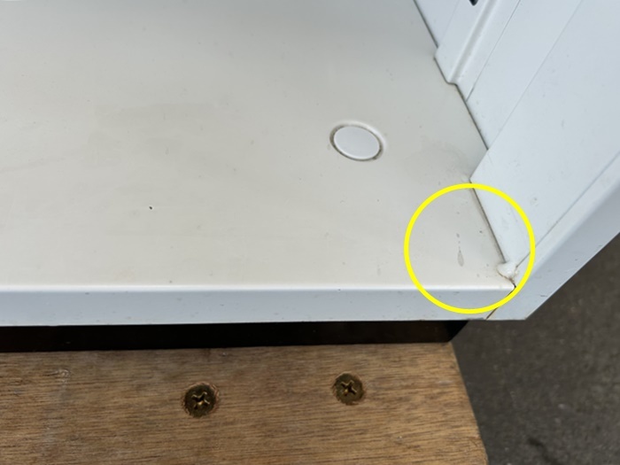 正面下部にヘコミがあります。