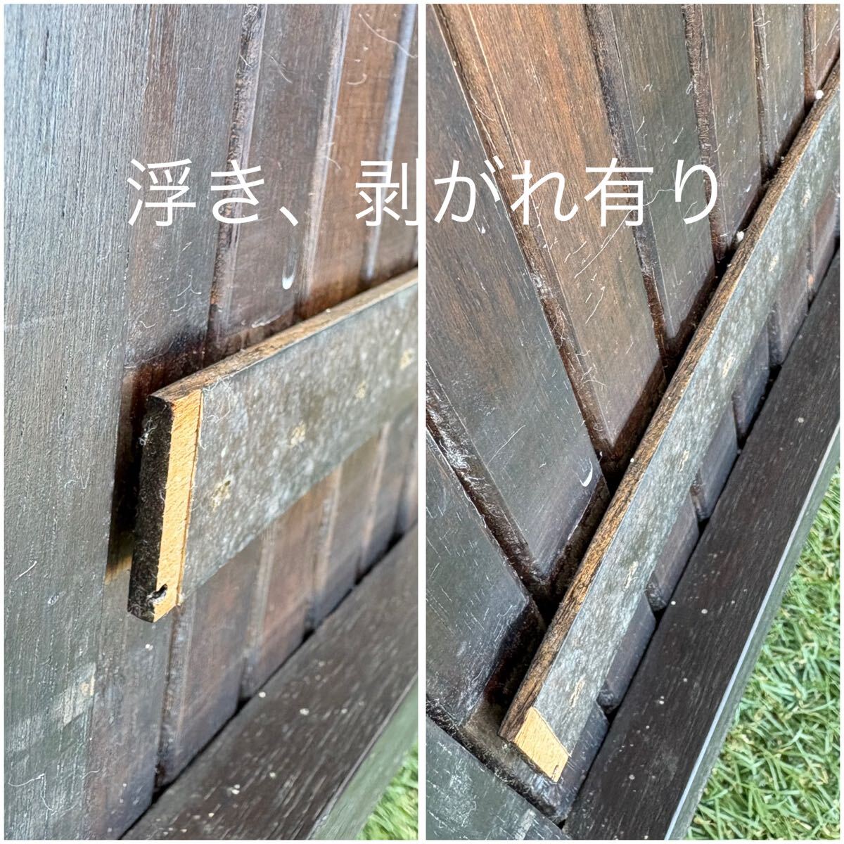 縦の木材の隙間に汚れや、